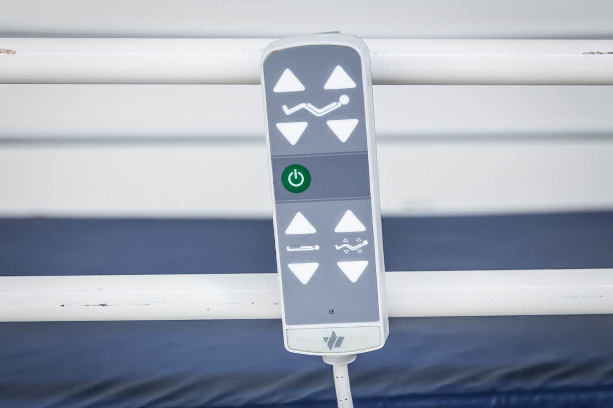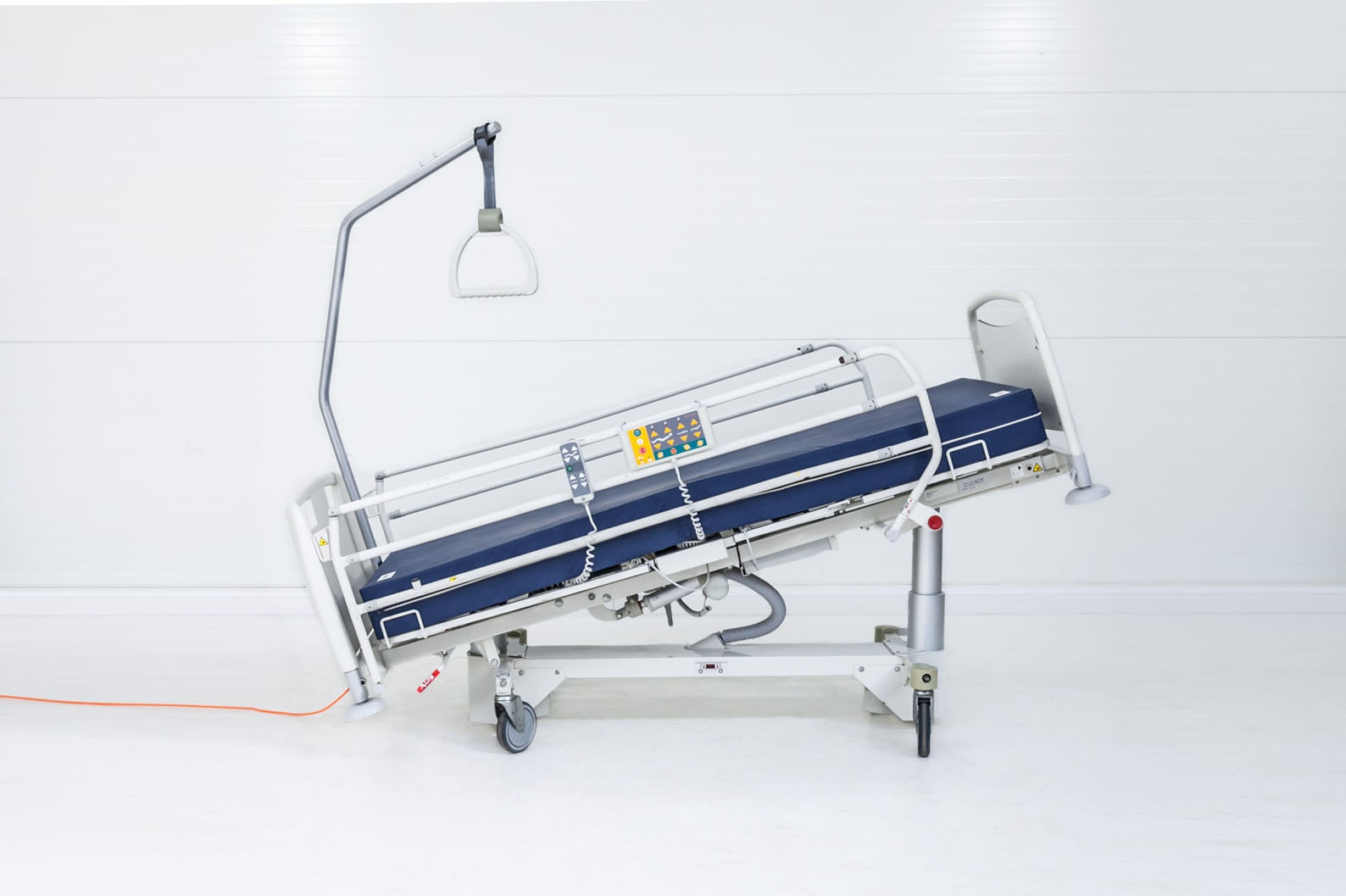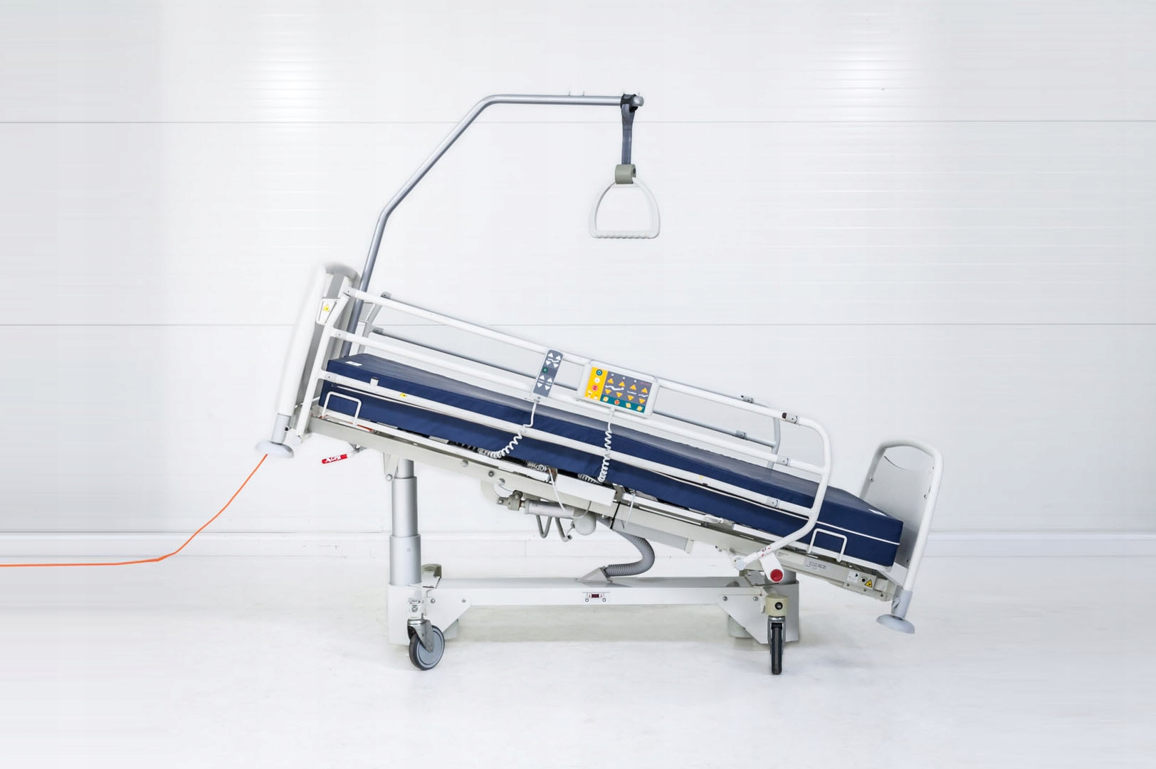 - Повністю електричне ліжко з регульованою висотою, сегментами спини та стегон, функціями Trendelenburag та AntiTrendelenburg
