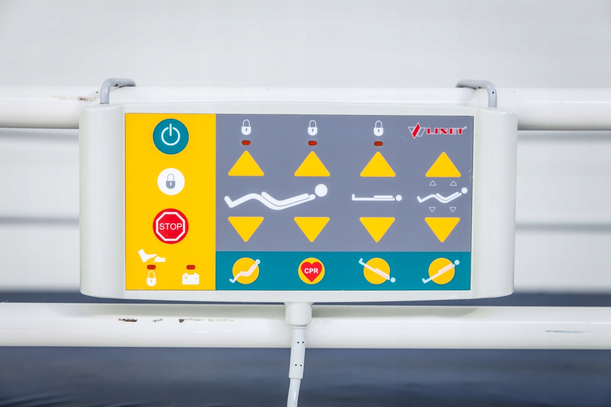 - Повністю електричне ліжко з регульованою висотою, сегментами спини та стегон, функціями Trendelenburag та AntiTrendelenburg