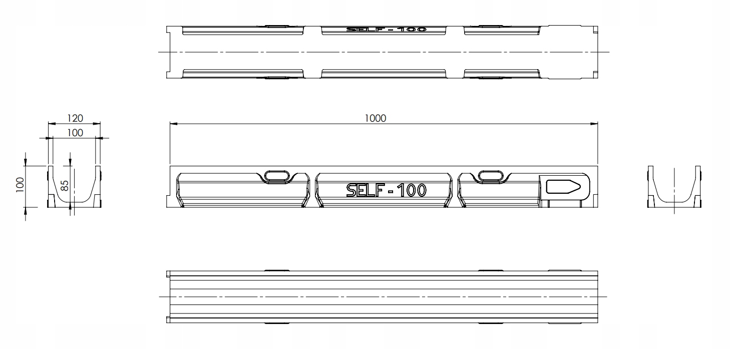 Завдяки високій міцності та низькій вазі, selfa selfa канали є ідеальним рішенням для зливу дощової води навколо будинків, перш ніж входити в гаражі, навколо терас та алей. Елементи системи підключені до ручки.