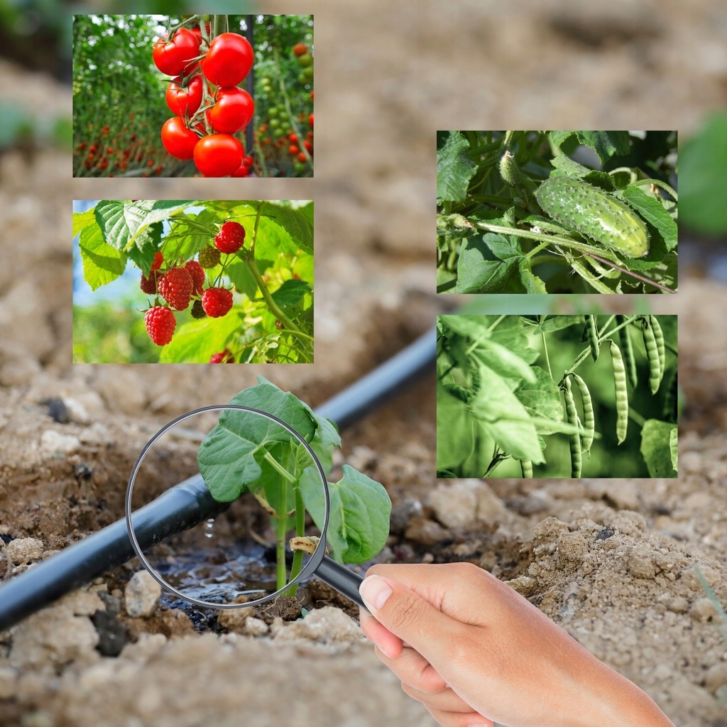 Рослин для яких полив здійснюється безпосередньо в прикореневу зону, особливо сприятливий для помідорів, огірків, полуниці, малини, лохини, бобових, кущів, хвойних і туй.