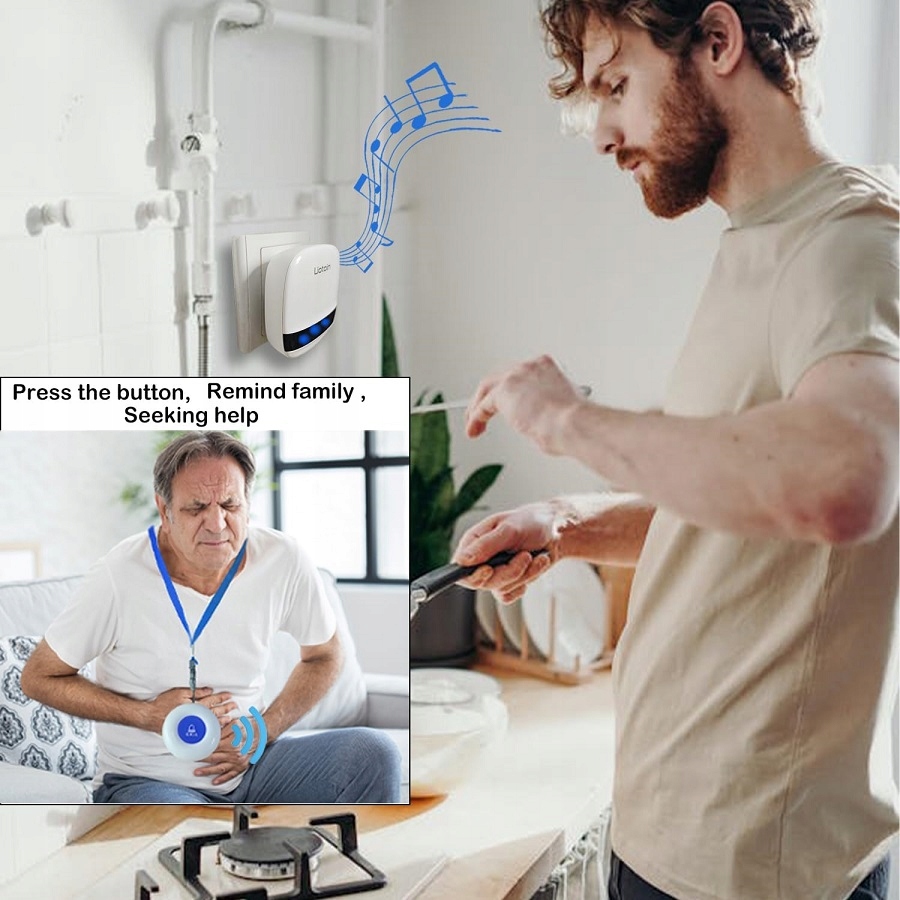 - Турбота про близьких: система бездротового пейджера підходить для дітей , похилого віку, вагітні жінки, паралізовані хворі та інваліди. Підходить для сімей, будинків престарілих, лікарень тощо. Система сигналізації для людей похилого віку та пацієнтів має надійно працювати 24 години на добу.