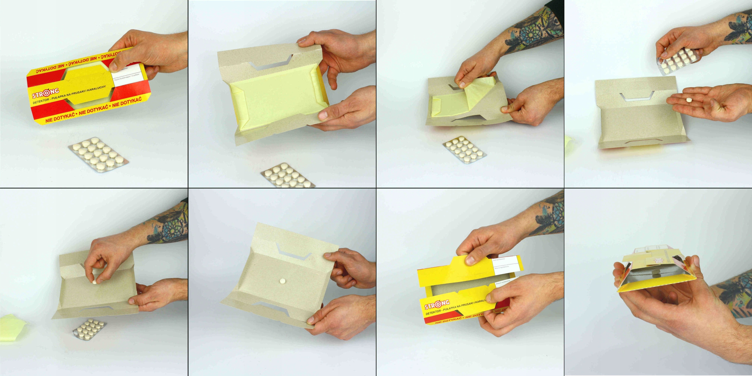 Розгорніть пастку PANKO/STRONG, видаліть аркуш паперу, що закріплює клейовий шар, видаліть таблетку атрактанта та покладіть в центральній частині клейкої поверхні. Сформуйте детектору форму, що нагадує «будиночок», а потім помістіть його в місце, де є таргани. Найпоширенішими місцями проживання тарганів є: шафа під раковиною, в/між шафами, під/за меблями, у ванній кімнаті тощо. Викиньте наповнену пастку в сміттєпровід або відро для сміття.