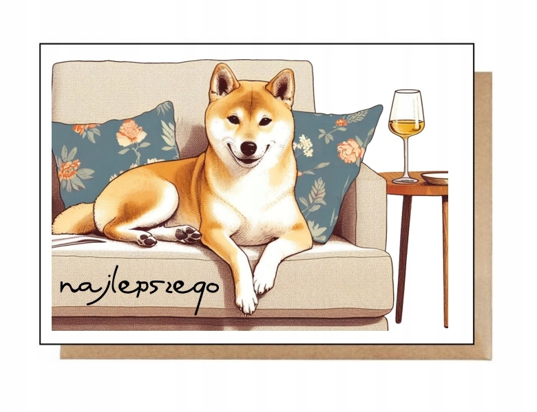 Листівка + еко конверт Шиба пенсія та іменини для вас