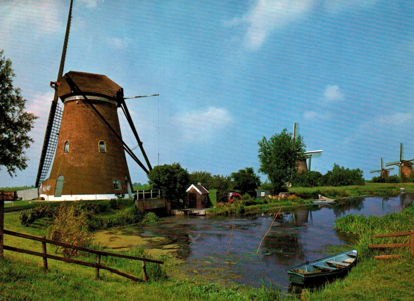 Листівка з Кіндердейка, Нідерланди – вітряні млини на каналі