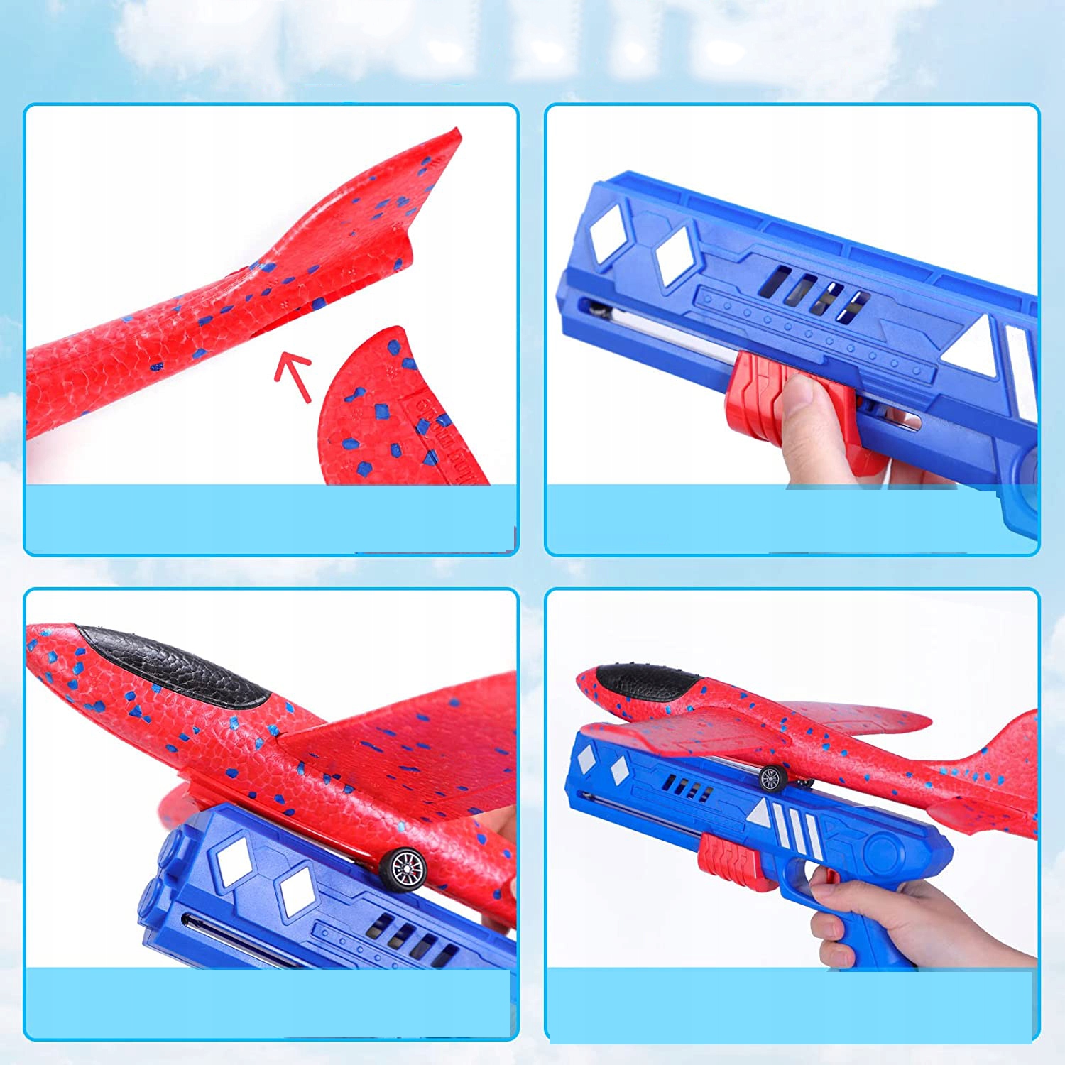 🛩️【Іграшки-літаки 2 в 1】 З’єднайте 3 пінопластові літаки, і пускова гармата подвоїть задоволення. Просто натисніть на курок, і літак швидко стартує. Літати можна, навіть якщо використовувати літак окремо, і літак буде летіти з невеликим кидком. Легкий і зручний у використанні.