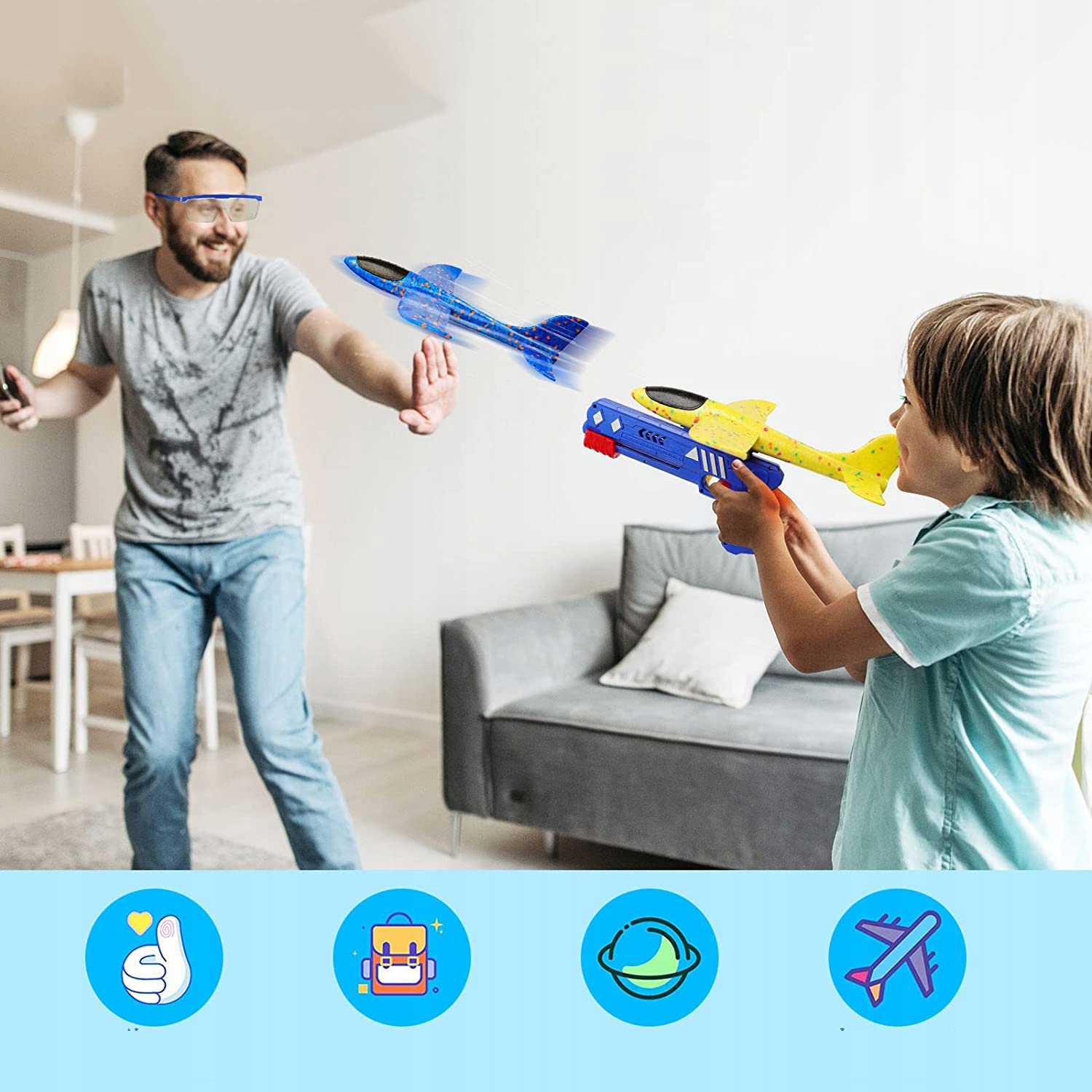 ❤️ Інтерактивна навчальна іграшка: діти можуть грати зі своїми друзями, що сприяє розвитку соціальних навичок. Батьки також можуть приєднатися до своїх дітей і побігти подивитися, хто летить далі. Під час гри діти дізнаються про літаки та гравітацію.