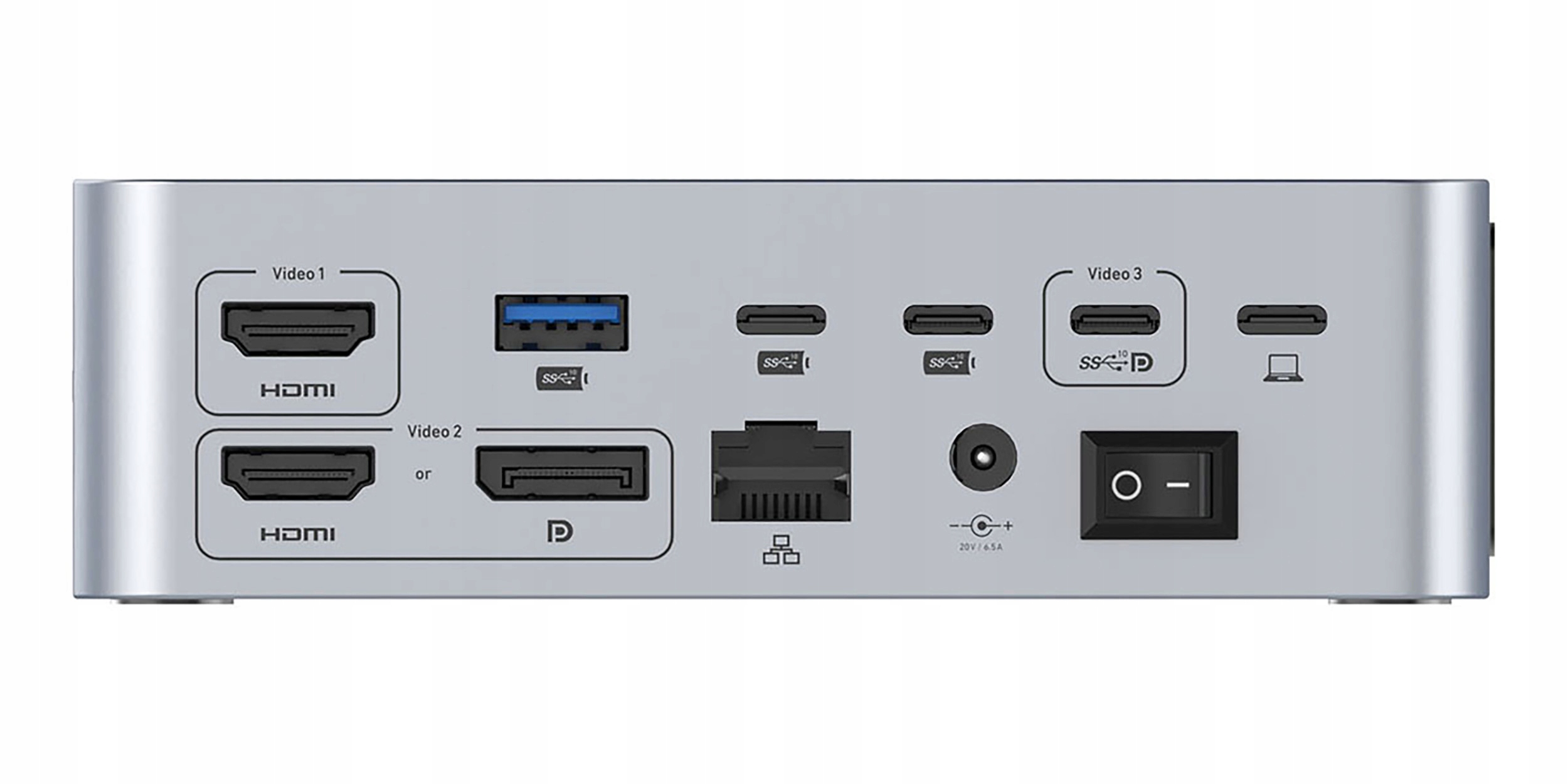 - Відеопорти: 2x HDMI 2.0 (до 5K@60 Гц), 1x DisplayPort 1.4 (до 8K@30 Гц або 5K@120 Гц), 1x USB-C 10G DP Altmode (до 8K@30 Гц)