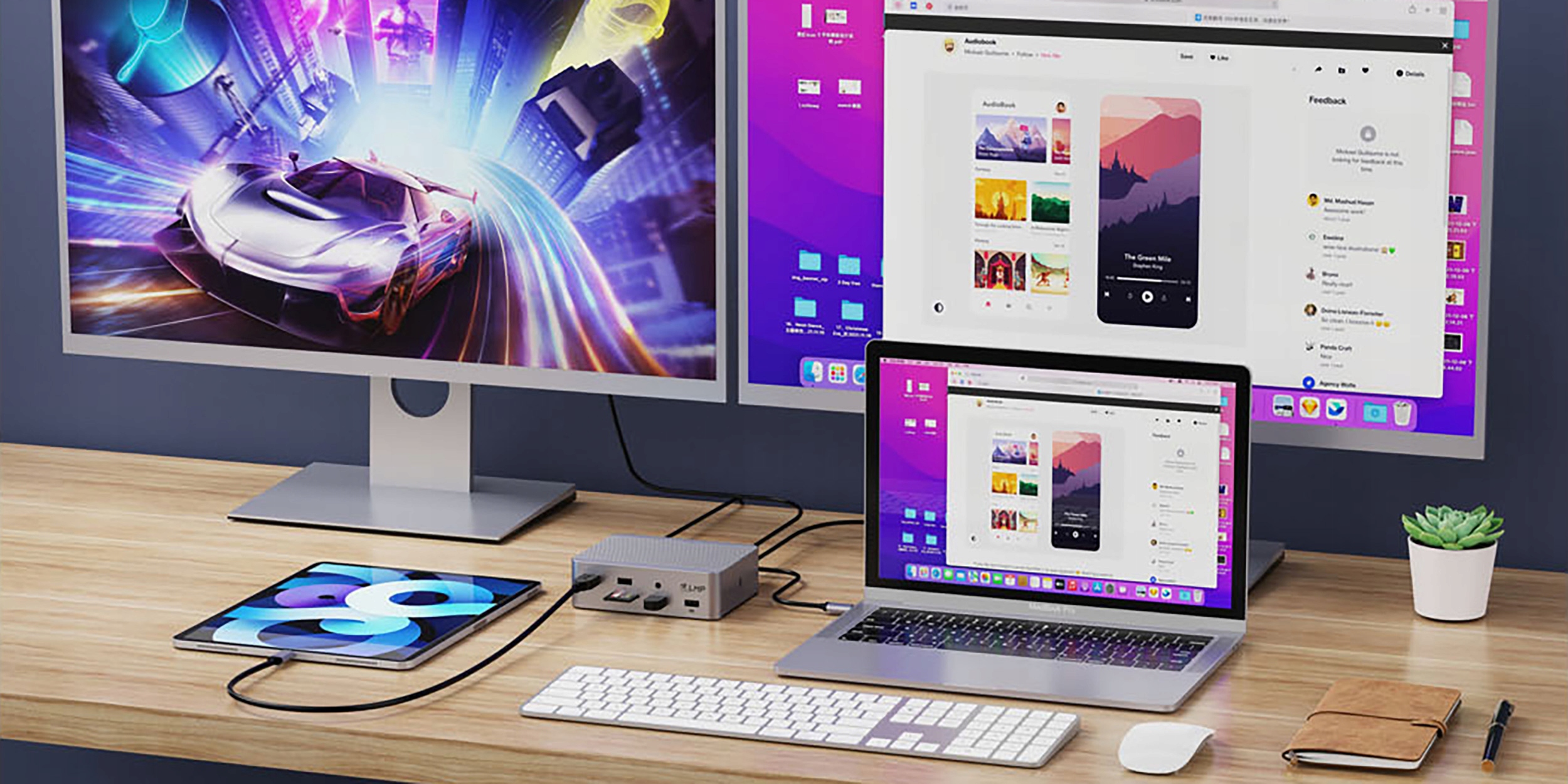 SuperDock 2 має 2 порти HDMI, DisplayPort і порт USB-C із функцією DP Altmode. Відеопорти DisplayPort (DP 1.4) і USB-C DP Altmode можуть досягати роздільної здатності до 8K при 30 Гц або 5K при 120 Гц, а HDMI (HDMI 2.0) підтримує 5K при 60 Гц. Подвійні монітори в розширеному режимі підтримуються з вибором між Video 1 (HDMI #1), Video 2 (HDMI #2 або DP) і Video 3 (USB-C DP Altmode). Відеосигнал передається через DP Altmode, тому перевірте, чи ваш хост підтримує відео зовнішні монітори (обмеження можуть стосуватися кількості зовнішніх моніторів через DP Altmode).