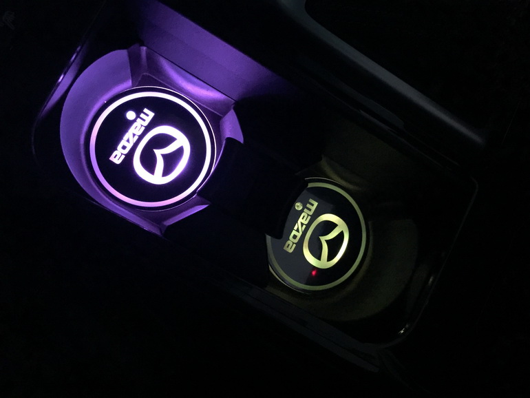 LEDwith the логотип Mazda розмістити, наприклад на місці ручок для напоїв у машині.