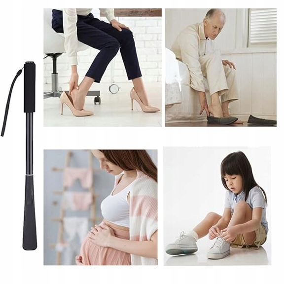 - 📏 Телескопічна конструкція дозволяє регулювати довжину від 36,8 см до 94 см, що дозволяє комфортно взуватись як сидячи, так і стоячи. Ідеально підходить для людей похилого віку, вагітних жінок, дітей та людей з обмеженими можливостями пересування.