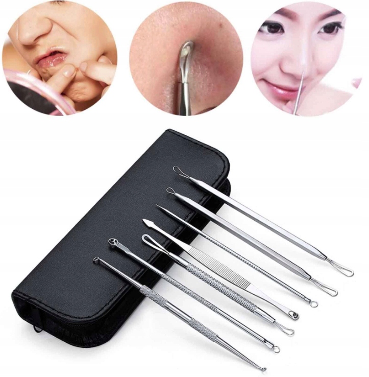 Універсальний набір до 7 двосторонніх ложечок для безпечного видалення чорних крапок, вугрів і прищів. Професійні петельні ложки призначені для видалення чорних крапок та інших забруднень на обличчі. Ідеально підходить для видалення прищів навіть із важкодоступних місць.