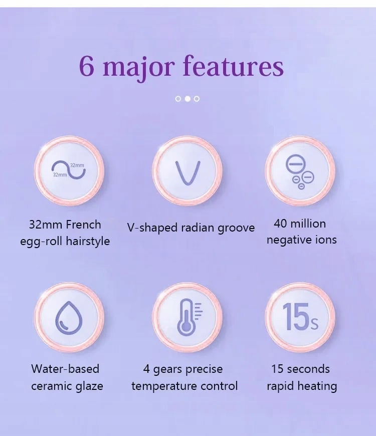 Ідеальна зачіска: попрощайтеся з періодами неслухняного волосся з нашою V-подібною плойкою для завивки 32 мм і швидким нагріванням за 30 секунд може швидко створювати природні довготривалі хвилі.