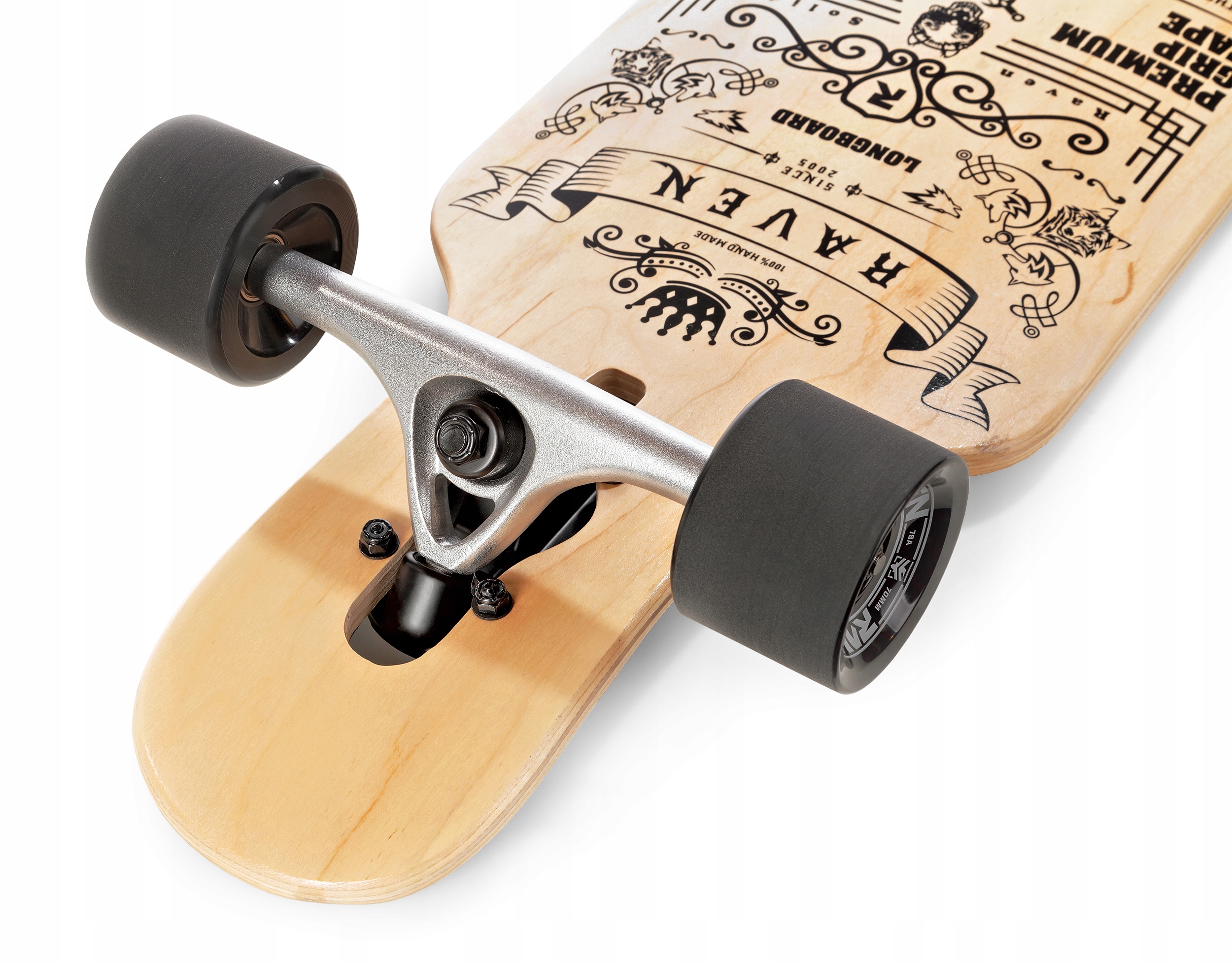 Longboard Raven Solidстворено для високих швидкостей і комфорту плавної їзди. Raven Solid належить до дощок Transport/Cruising - найдовших у сімействі лонгбордів. Використання довгої стільниці дозволяє досягти високих швидкостей з мінімальними зусиллями. Гумові колеса діаметром 70 мм забезпечують найвищий комфорт водіння незалежно від досягнутої швидкості та роблять їзду по нерівній поверхні без проблем.