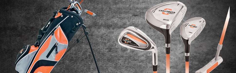 - Набір Longridge Junior Challenger був розроблений спеціально для юних гравців у гольф. Яскраві кольори в поєднанні з передовою технологією роблять цей набір привабливим, цікавим і простим у використанні. Легка головка ключки та стрижень допомагають підвищити швидкість удару для молодшого гравця в гольф. Сумка помаранчевого кольору, підходить до комплекту, оснащена подвійним м'яким ременем і кількома кишенями для зберігання.