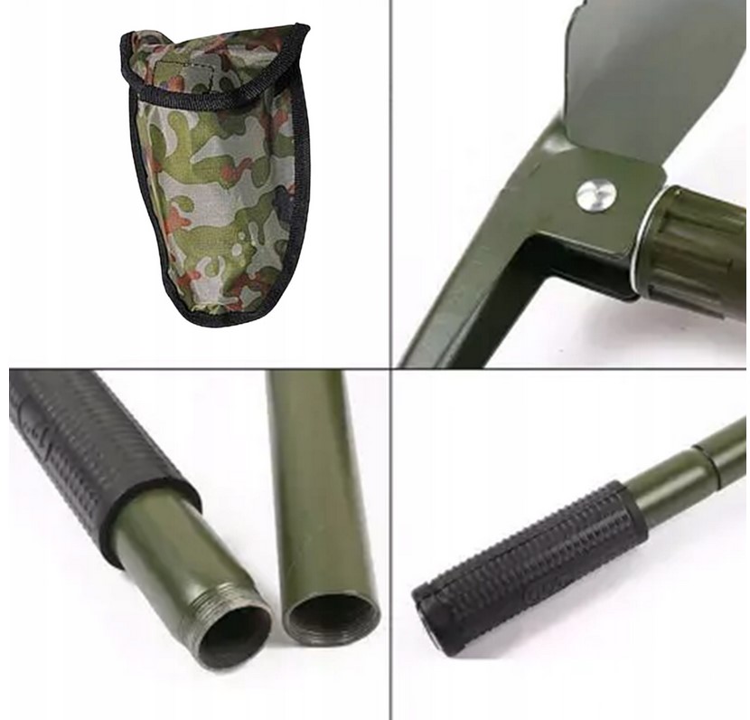 Інструмент, необхідний у кожній машині, кемпінгу, саду, будинку чи під час риболовлі. Ви можете легко зберігати його в бардачку автомобіля, тому що ви можете скласти його до невеликого розміру та помістити в чохол. Його також можна використовувати як мотику. Гумова ручка гарантує, що інструмент буде міцно триматися і не буде вислизати з рук під час молитви.