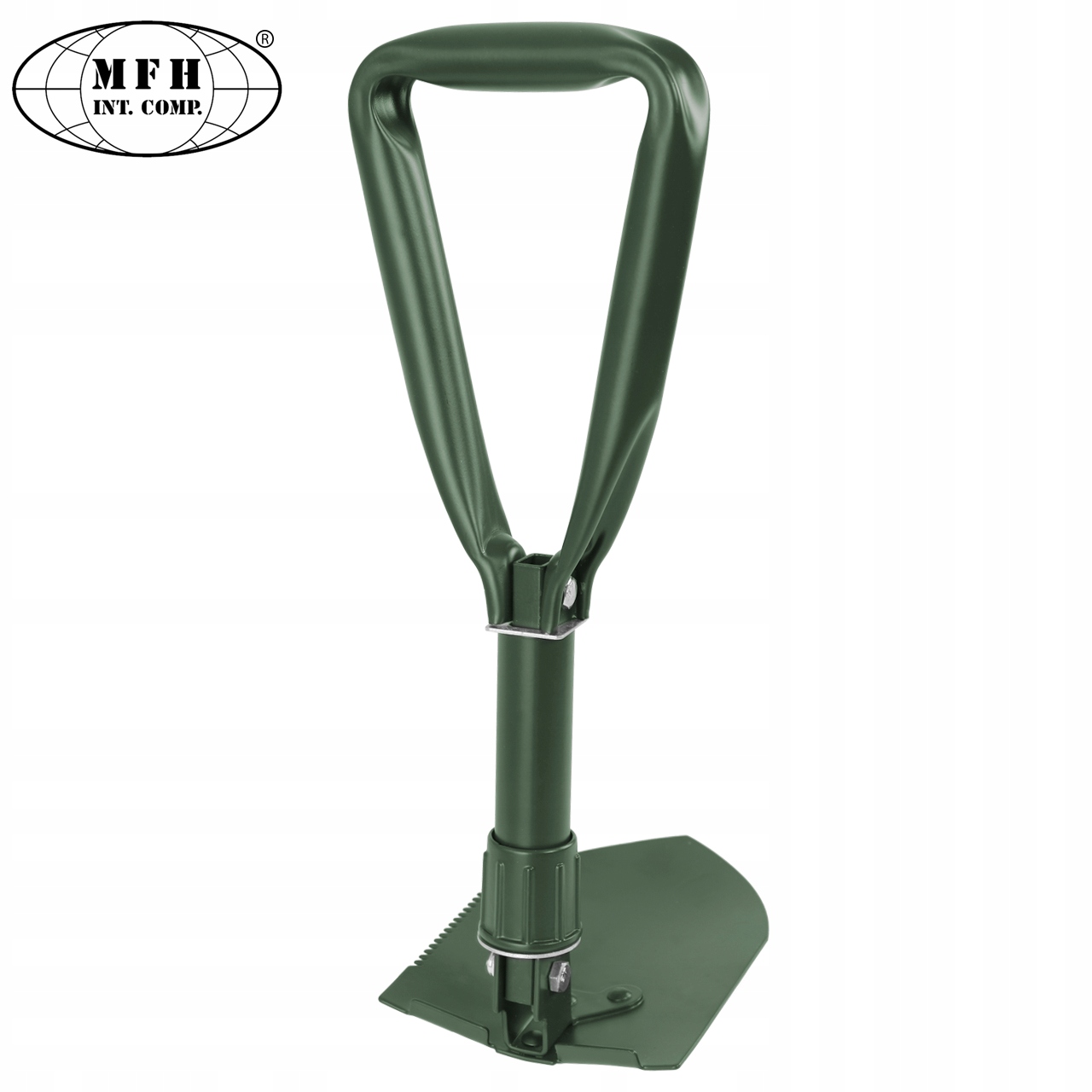 Складна лопата, виготовлена за моделлю армії США. Продукт німецької компанії MFH Int. Comp. Компактна, дуже зручна модель зі зменшеними розмірами. Ідеально підходить для походів і виживання, ідеально підходить для роботи в саду або в автомобілі. Невеликий за розміром і вагою, він поміститься в бардачку автомобіля, кишені штанів або навіть жіночій сумочці.
