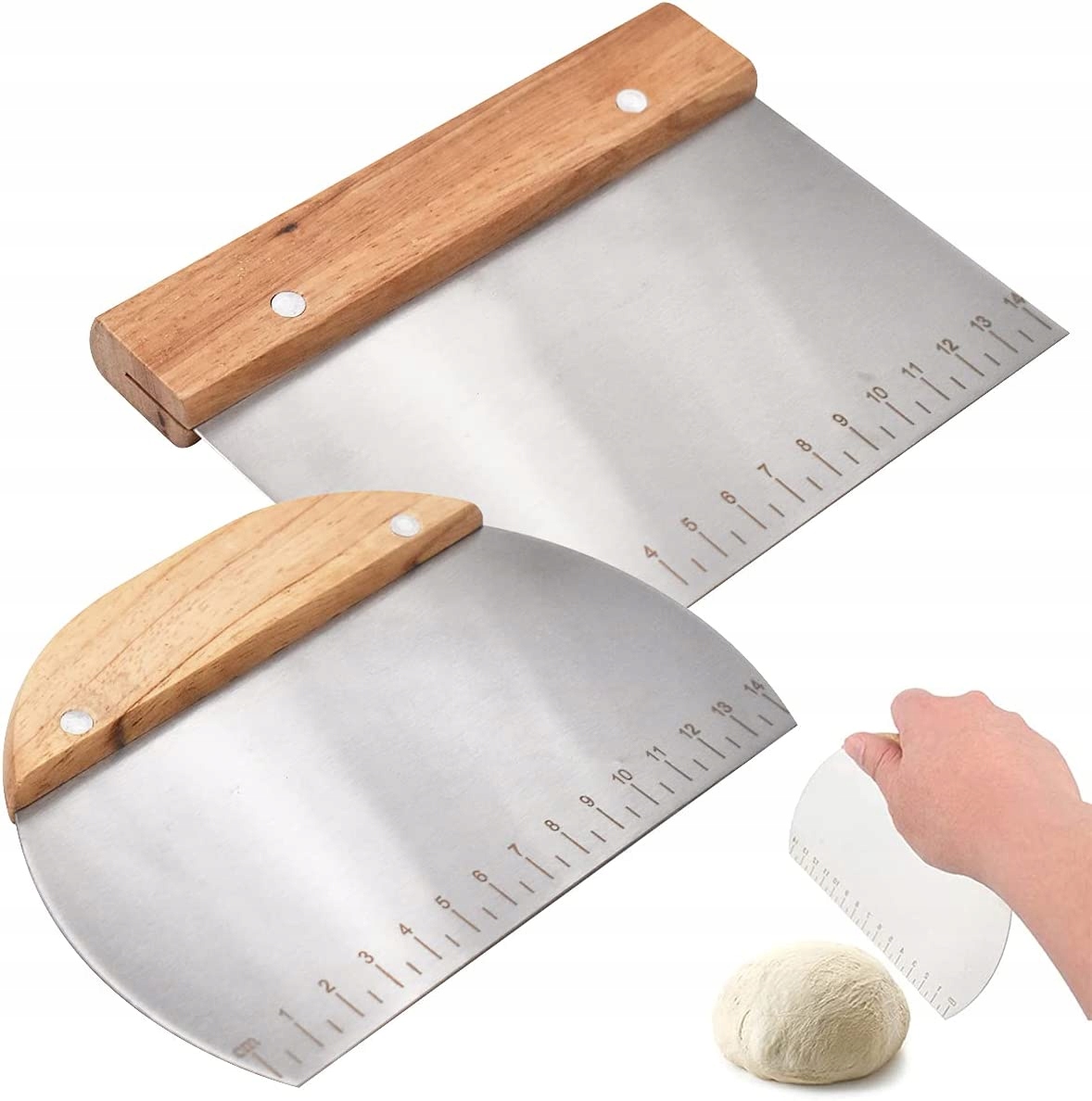 Назва: набір із двох частин, скребок для борошна з нержавіючої сталі з градуйованим різаком для тіста, напівкруглий скребок + квадратний скребок