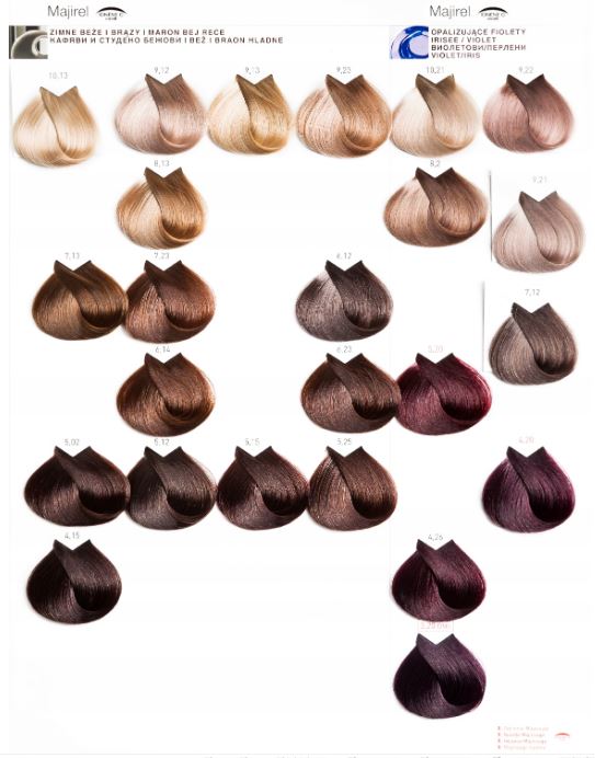 Loreal Фарби Majirel можна розділити на наступні підкатегорії: