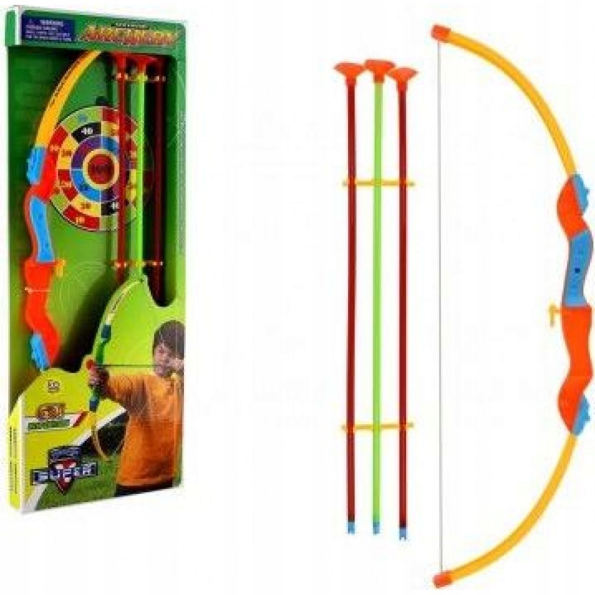 Набір для стрільби з лука — це безпечна іграшка, за допомогою якої діти можуть цікаво дізнатися про цей цікавий вид спорту. На кінцях стріл замість гострого вістря є м’яка присоска.