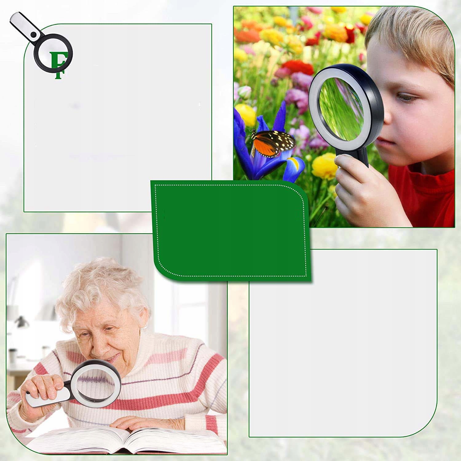 🔍🔍【Ідеальний подарунок для людей похилого віку та дітей】Портативна лупа з підсвічуванням підходить для людей похилого віку для перевірки інструкцій, чеків, рецептів, дрібного шрифту та деталей на пляшечках з ліками, а також для читання книг, газет, журналів тощо. Вона допомагає викладати науку та пробуджує інтерес дітей до світ.