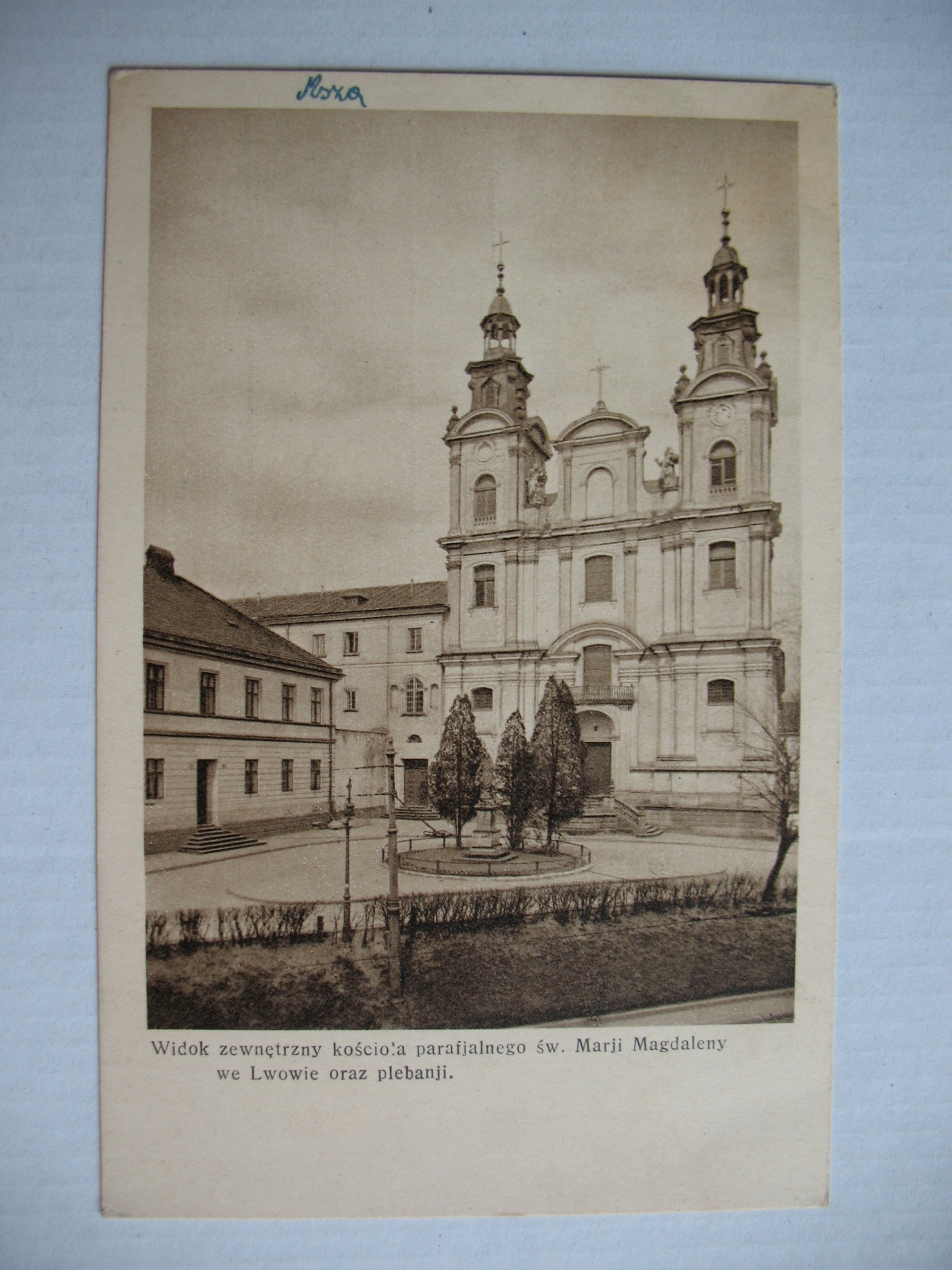 LWÓW KOŚCIÓŁ ŚW. MARJI MAGDALENY WIDOK ZEWNĘTRZNY przedwojenna POCZTÓWKA