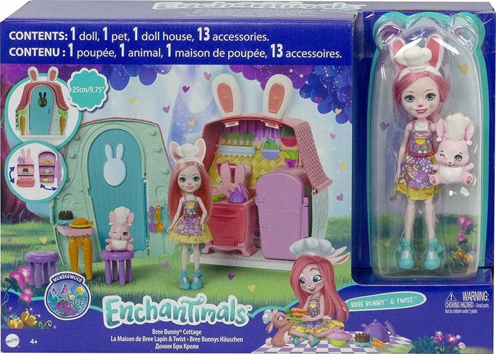 Останнє видання ляльки Зайчик та її ПЕТ Twist . Цього разу з будинком, прикрашеним кроликами. У будинку ви знайдете ляльку Брі та її кролика Твіст , а також усі аксесуари, необхідні для того, щоб мати чудову час і готувати смачні страви! Ці милі друзі разом створюють рівновагу, мир та гармонію серед усіх живих істот. Кожна героїня доглядає за твариною, з якою вона ділиться не лише персонажем, але й зовнішністю. Кожному не вистачає серії echantimals має свою особистість, сили тварин, а також унікальний вигляд, натхненний природою та володіли домашніми тваринами.