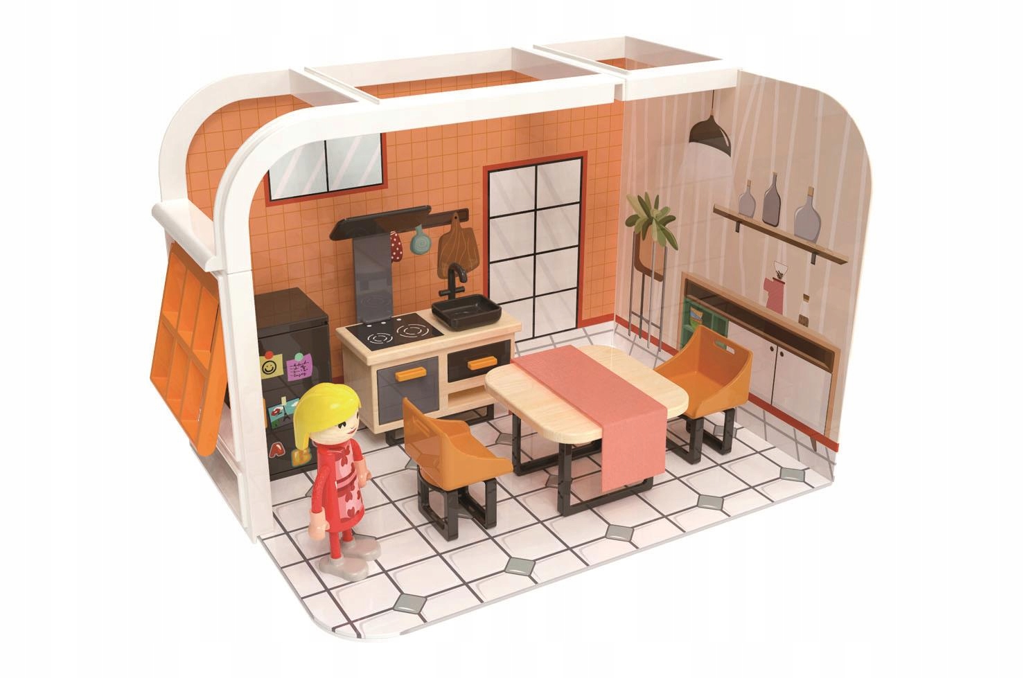 Будинок мрії - КУХНЯ для гри з ляльками та фігурками. Красиві меблі та аксесуари принесуть задоволення в життя. Є стіл зі стільцями, холодильник, кухня з витяжкою та мийкою, красивий дизайн інтер'єру, вікно, що відкривається, і рухома лялька для гри.