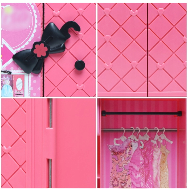 Після вибору відповідного вбрання лялька може подивитися на себе в овальному дзеркалі, розміщеному на дверцятах шафи, що відкриваються. Після гри ми можемо повісити сукні на вішалки, що входять до комплекту, і покласти сумочки та взуття полиця.
