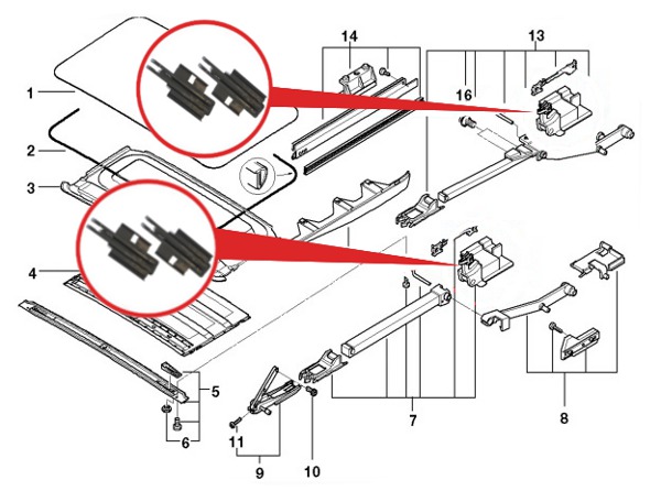 Люк для BMW E39 X5 E53 ковзаюча рейка ZEST NAPR