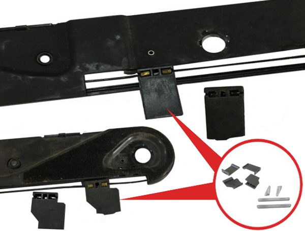 Найпоширенішою причиною цього є пошкоджені, тріснуті або зламані пластикові елементи та салазки рейок механізму люка.
