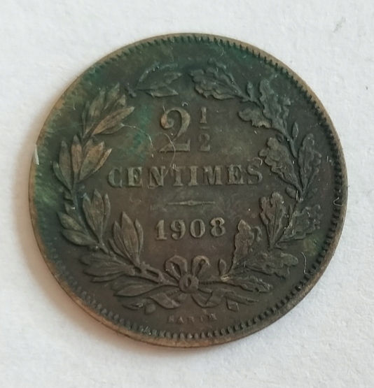 Люксембурзька монета 2 1/2 сантима 1908 року