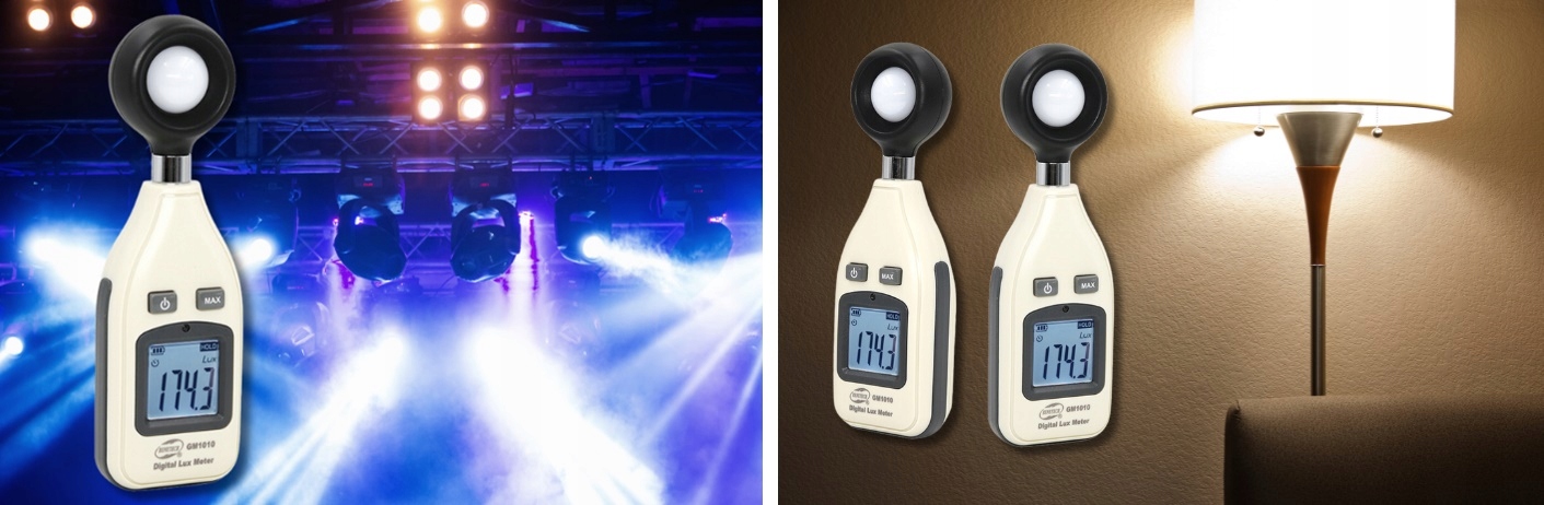 Люксметр GM 1010 від Benetech — це інструмент для вимірювання інтенсивності світла з діапазоном 1-200 000 люкс. Пристрій використовується в багатьох сферах. Вимірювач можна використовувати в електрооптичній промисловості. Він також використовується для огляду приміщень, де працюють або перебувають люди, а також для розведення рослин і тварин.