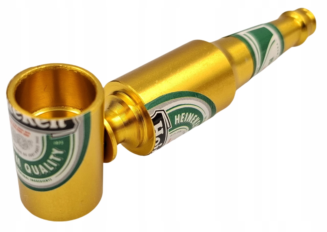 Пропозиція поширюється на практичну трубу у формі пляшки, яку видно на фотографіях. Він виготовлений з металу і складається з двох частин. Це полегшує очищення стовбура. Ці деталі з’єднуються шурупами і виходить бочка, як на фото. Трубка маленька і зручна, тому її можна брати куди завгодно. Він легко поміститься у вашій кишені. Висота пляшки 8,2 см, діаметр 1,7 см. У складеному вигляді ствол має довжину 8,3 см і висоту 2,6 см.