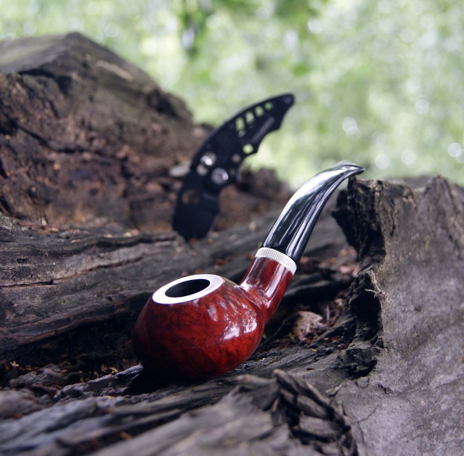 Цікава люлька ручної роботи з високоякісного італійського шипшини. Масивна головка під назвою «томат» має товсті стінки топки, захищені прекарбонатом. Мундштук із міцного акрилу з місцем для змінних фільтрів 9 мм. Посріблена каблучка додає елегантності та контрасту. Люлька упакована в тканинний чохол і фірмову коробку, зручна під час куріння, чудово підійде в якості вишуканого подарунка. Важливо: рифлені труби тепер можуть бути трохи темнішими. Шипшина - Італія/Лігурія, шипшина - Mimmo, клас - Екстра.