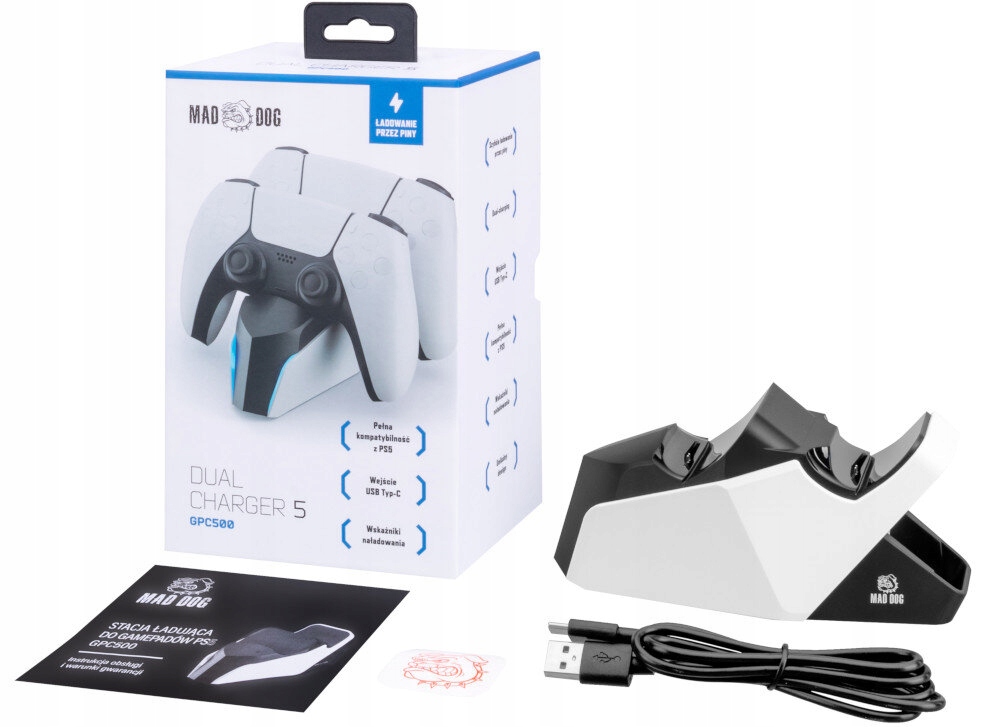 У упаковці, крім станції завантаження Mad Dog GPC500 Ви знайдете USB-C-USB-A та посібник користувача в польській мові з гарантійними умовами.