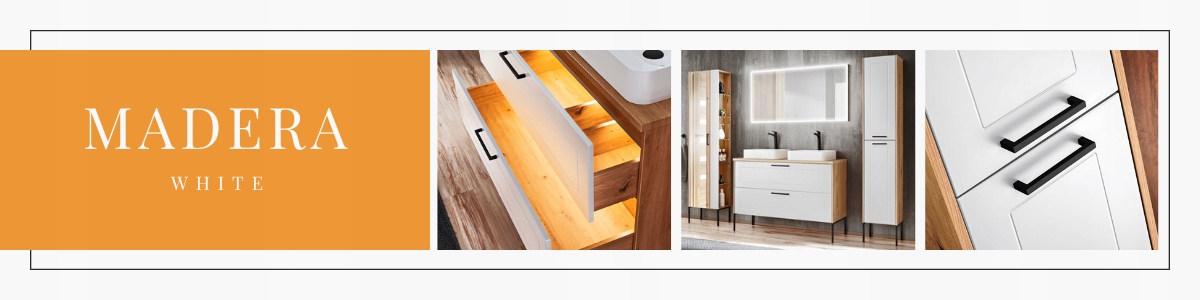 Madera White - це предмети, розроблені в сучасному стилі, завдяки чому вони легко впишуться практично в будь-яку композицію. Білі фасади та корпус у кольорі Vintage дуб. Меблі для ванної кімнати з колекції Madera White - це комфорт у використанні та функціональність. У колекції – тумби під умивальник, висока колона, дзеркальні тумби.