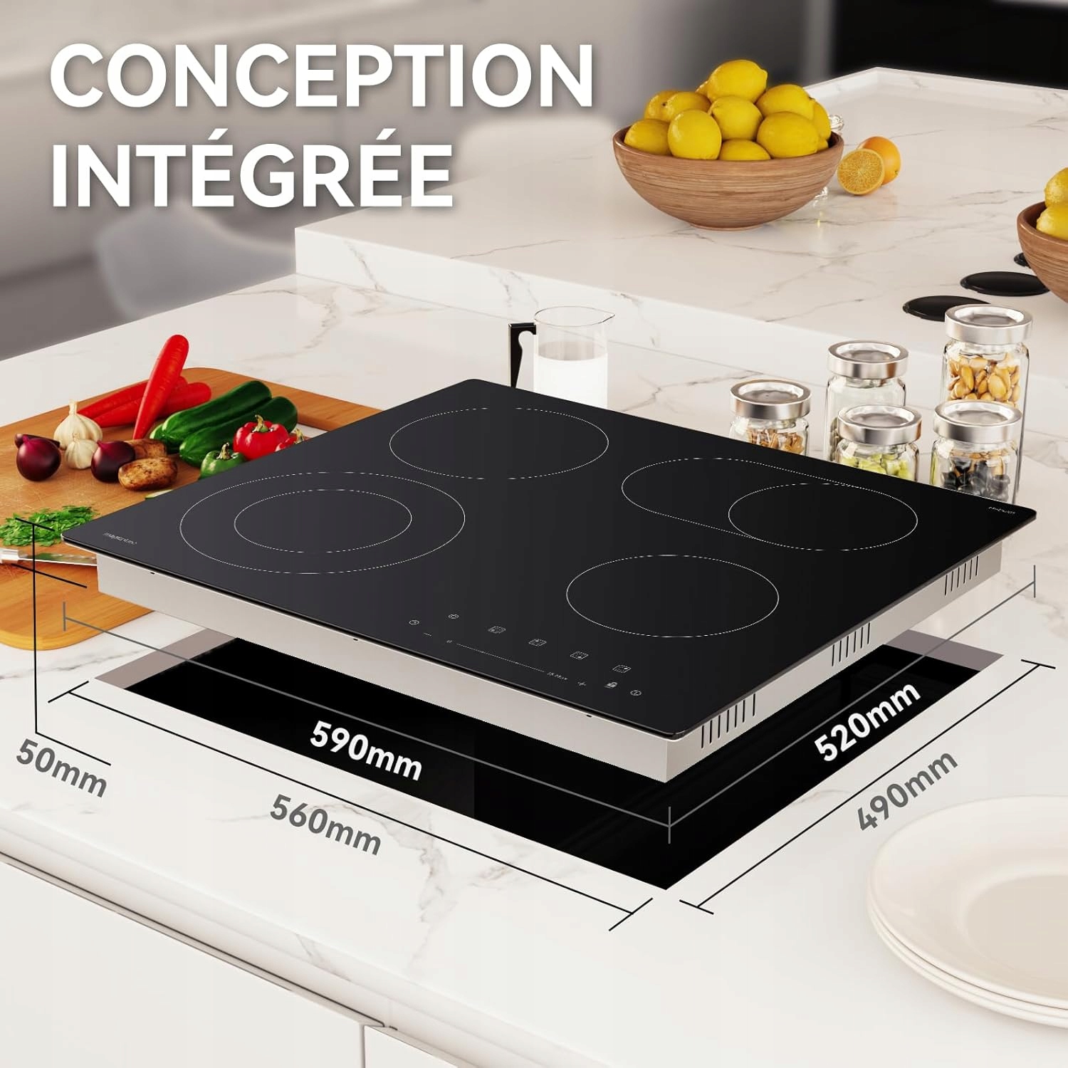 Керамічна пластина Magicplux з 4 пальниками 59 см, дві овальні зони, 15 налаштувань нагріву, дотик до дотику, батьківська блокада, таймер, придатна для всього кухонного посуду, 7200 Вт 2>