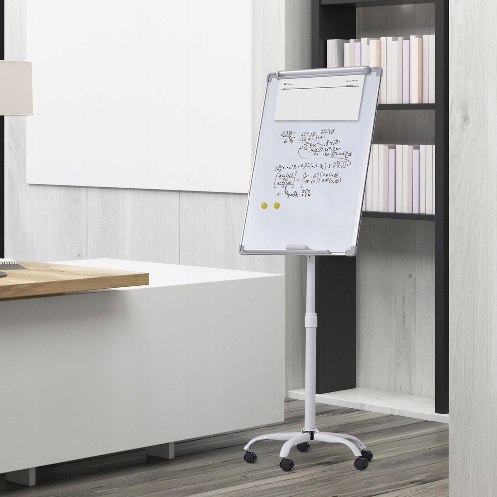 Колеса, розміщені в основі, дозволяють вільно рухатися фліпчарт між кімнатами або в межах одного місця.