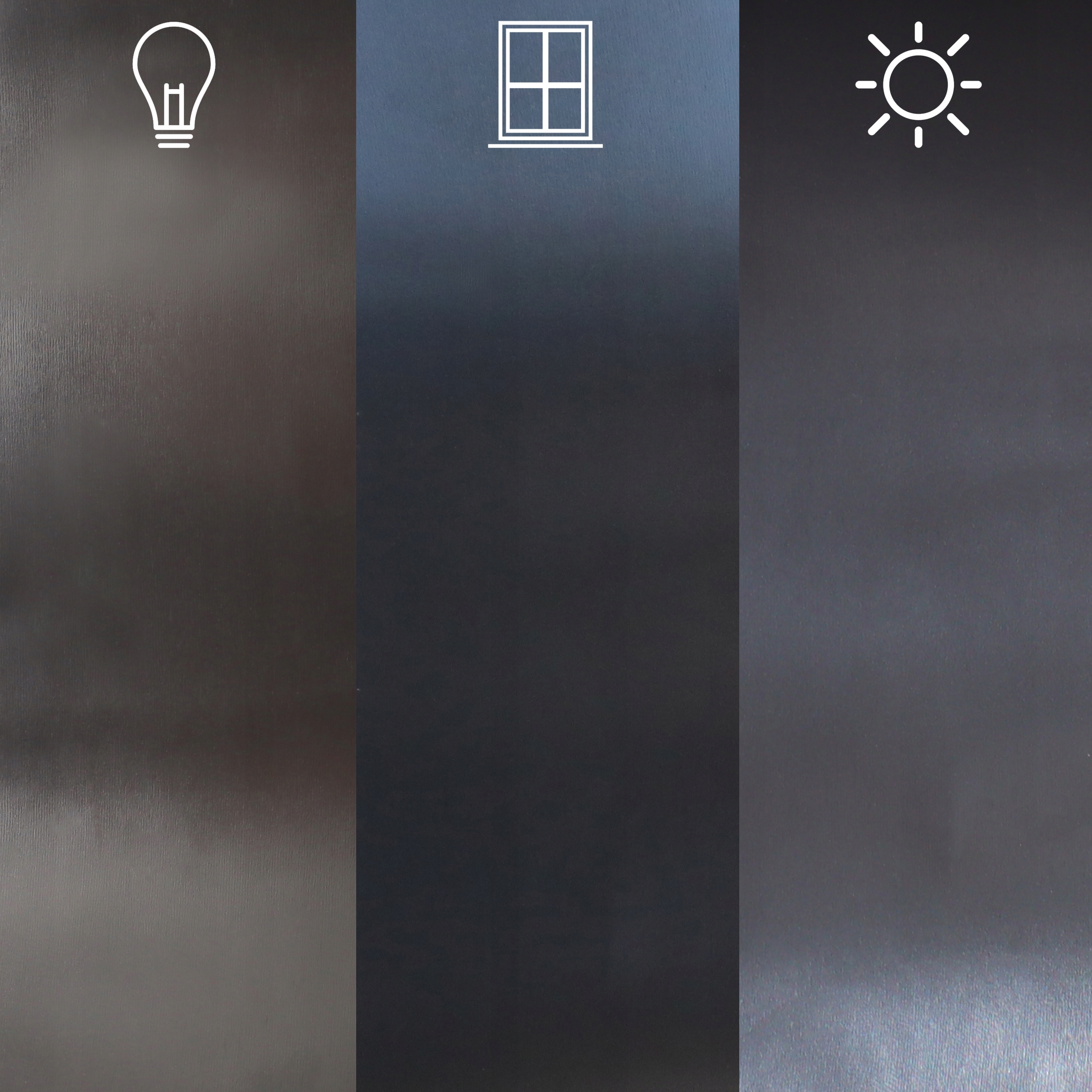 Колір магнітної фольги є класичним чорним чорним кольором, але її відтінок може змінюватися залежно від типу світла :