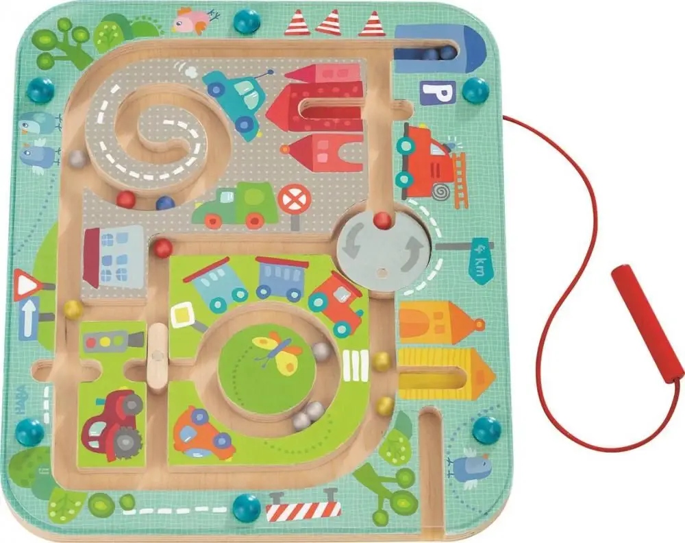 Гра з магнітним лабіринтом «Місто» — це фантастична розвага, пов'язана з наукою. Лабіринт містить різнокольорові кульки, які потрібно переносити в потрібні місця за допомогою дерев'яної палички з магнітом. Гра розвиває терпіння, концентрацію та точність, а також готує вас до навчання письма.