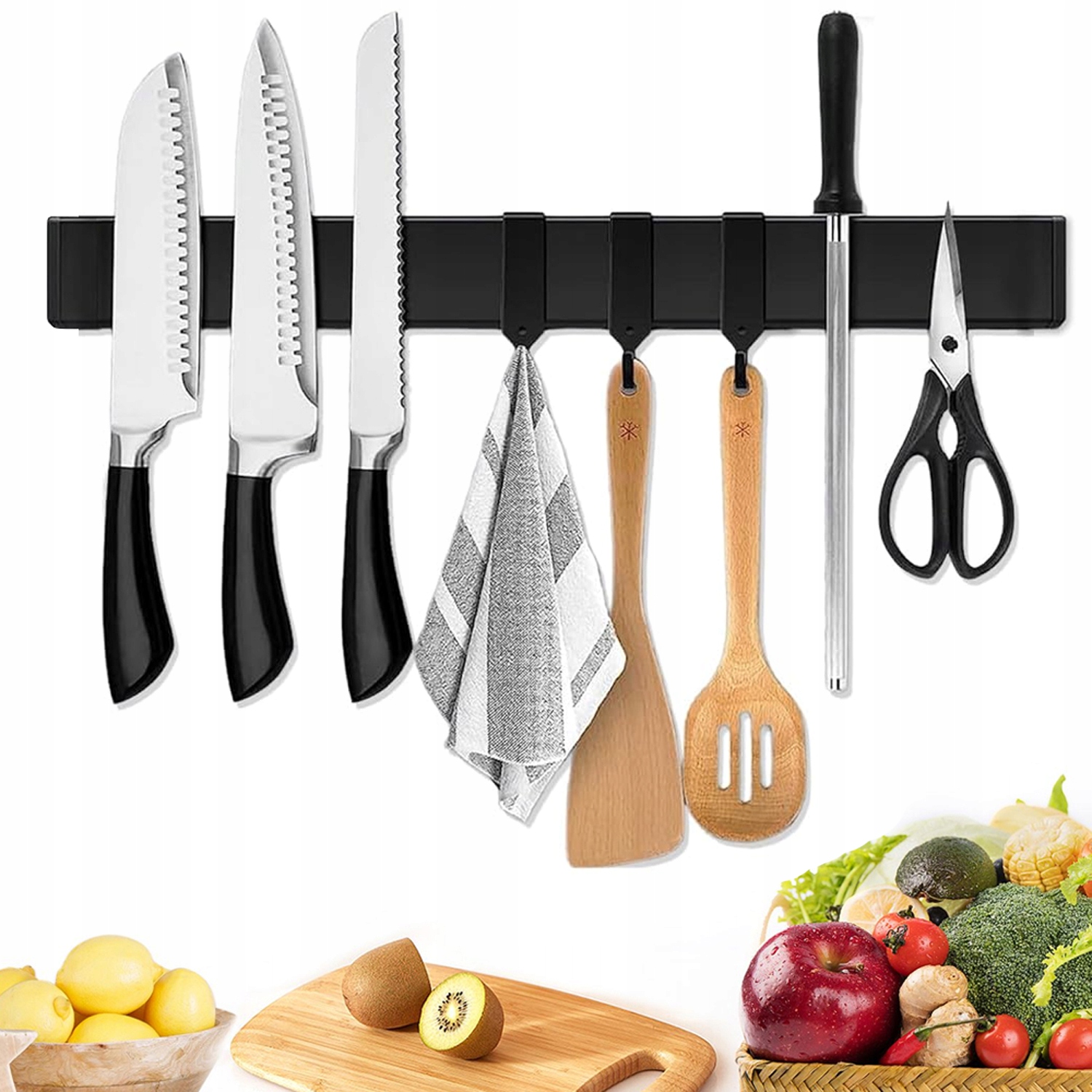 🔪Економія місця -Цей 40-сантиметровий тримач для ножів забезпечує місце для кількох кухонних приладдя, заощаджуючи місце на кухні. Він також має три знімні гачки, які дозволяють легко зберігати інші неметалеві інструменти, зберігаючи робоче місце в порядку. Знайдіть ідеальне місце для зберігання цього компактного тримача для ножів і насолоджуйтеся більшим простором у своїй їдальні.