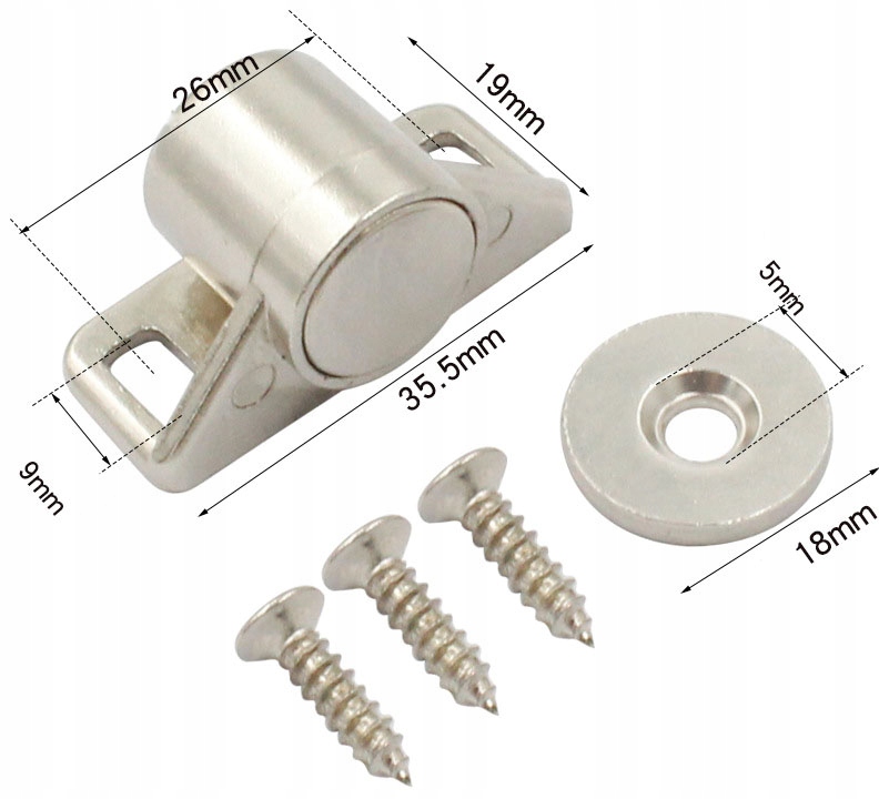 Сильна сила магніту: Кожна магнітна засувка оснащена сильним магнітом і металевою прокладкою. Поєднання сильного магніту та товстої металевої пластини може забезпечити двері гардеробу, ящиків, кришки або дверей безпечно закриваються.