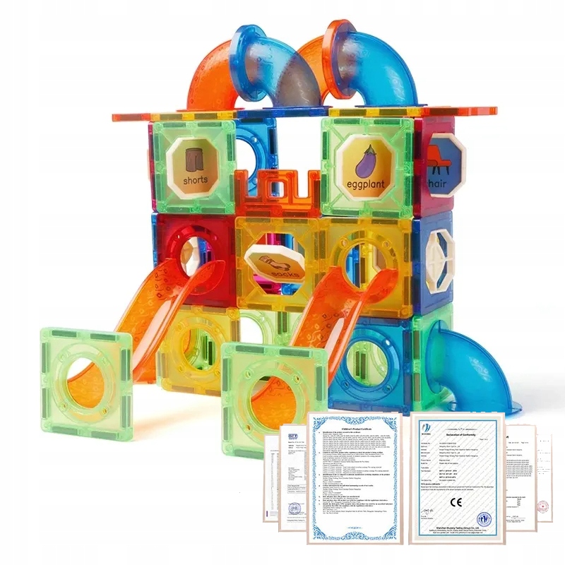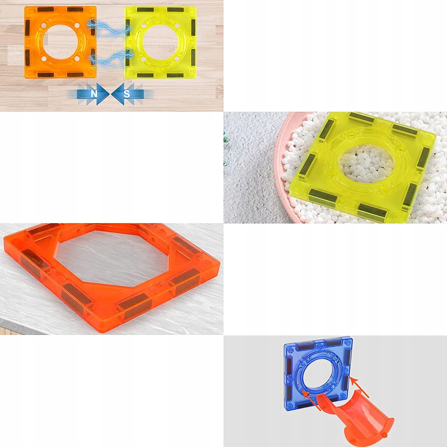 Блоки з'єднані один з одним за допомогою вбудованих СИЛЬНИХ магнітів ми розміщуємо слайди та труби між блоковими конструкціями, роблячи навіть найвитонченіші проекти реальністю. Ми можемо кидати м'ячі через гірки, які входять в набір. Блоки з останньої поставки в 2023 році дозволять скомпонувати не тільки плоскі фігури, але й тривимірні 3D-форми.