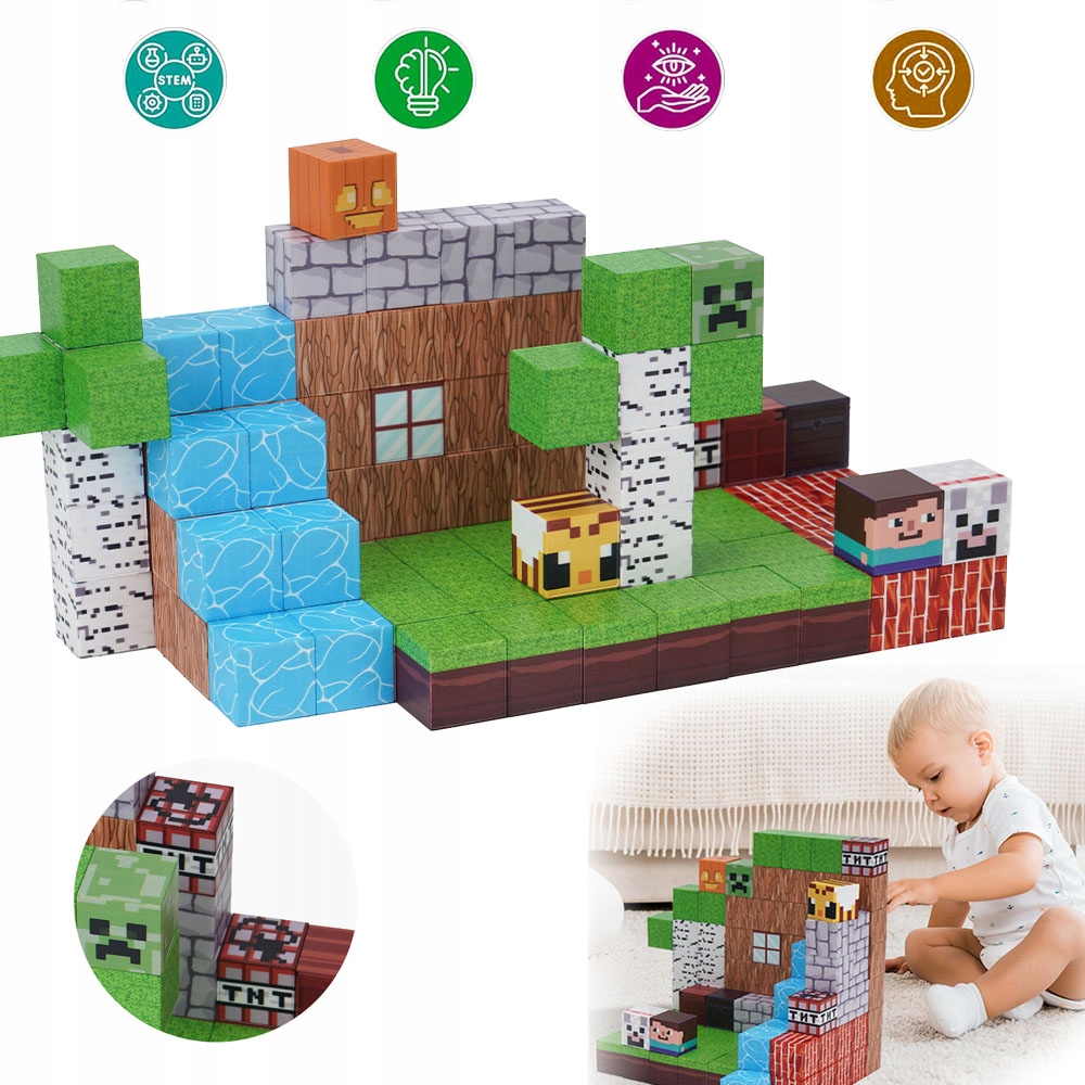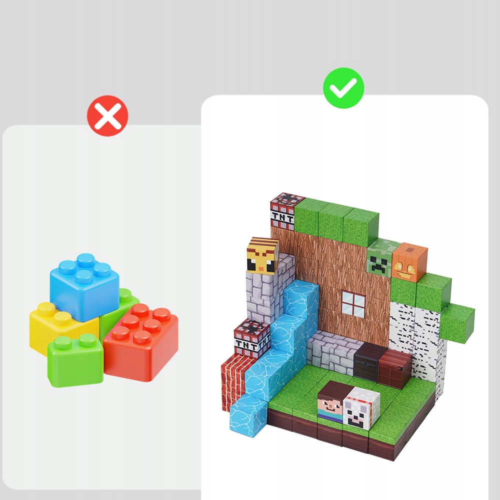 🛡️ Безпека Найголовніше: виготовлено з міцного, нетоксичного пластику найвищої якості. У кубики назавжди вбудовані міцні магніти, що запобігає їх випаданню та гарантує безпечну гру маленьких рученят (від 3 років). Кубики з’єднуються швидко та надійно.