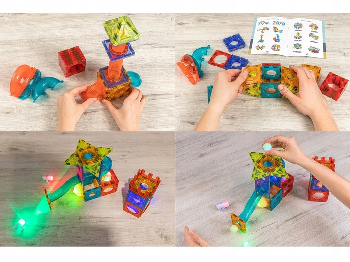 Елементи з’єднуються за допомогою вбудованих магнітів і дуже легко збираються та розбираються, з них можна створювати чудові структури.