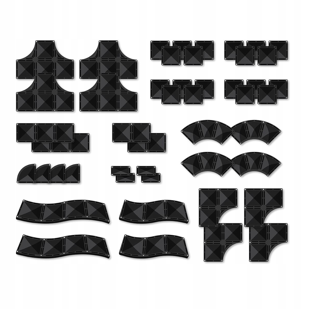 Створено, щоб заохотити дітей грати та вчитися годинами. Елегантний чорний відтінок плиток забезпечує ідеальний вступ до відкритої гри! Виняток білих ліній і дорожньої розмітки дозволяє трансформувати елементи у власні креативні структури. Створюйте замки, вежі, гелікоптери тощо за допомогою цих захоплюючих нових елементів