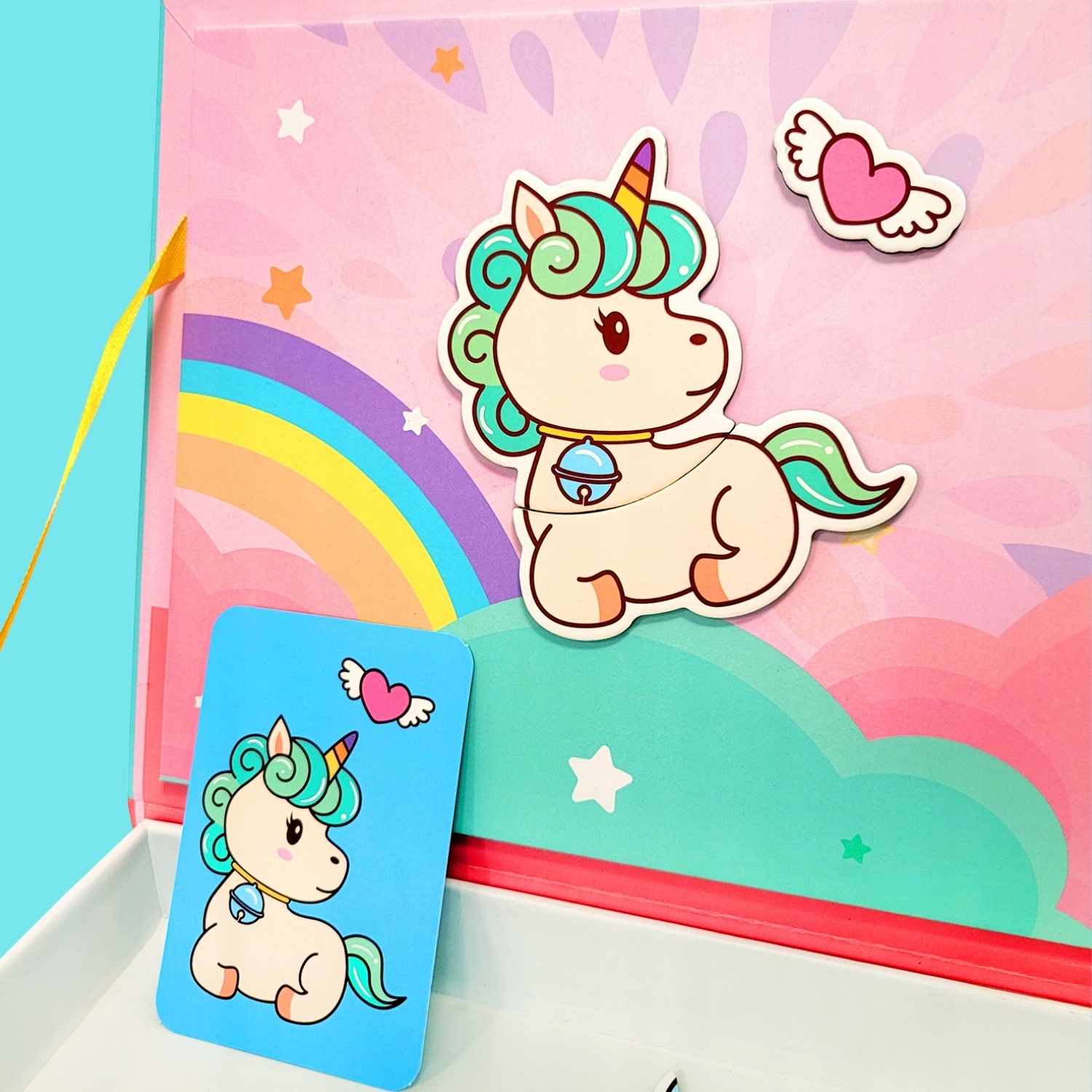Іграшка розвиватиме її когнітивні функції та навчатиме творчому мисленню, концентрації та самостійності. Набір містить картки із зображенням милих єдинорогів, а завдання малюка - розташувати магнітні елементи за зразком, щоб повністю відтворити задану картинку.