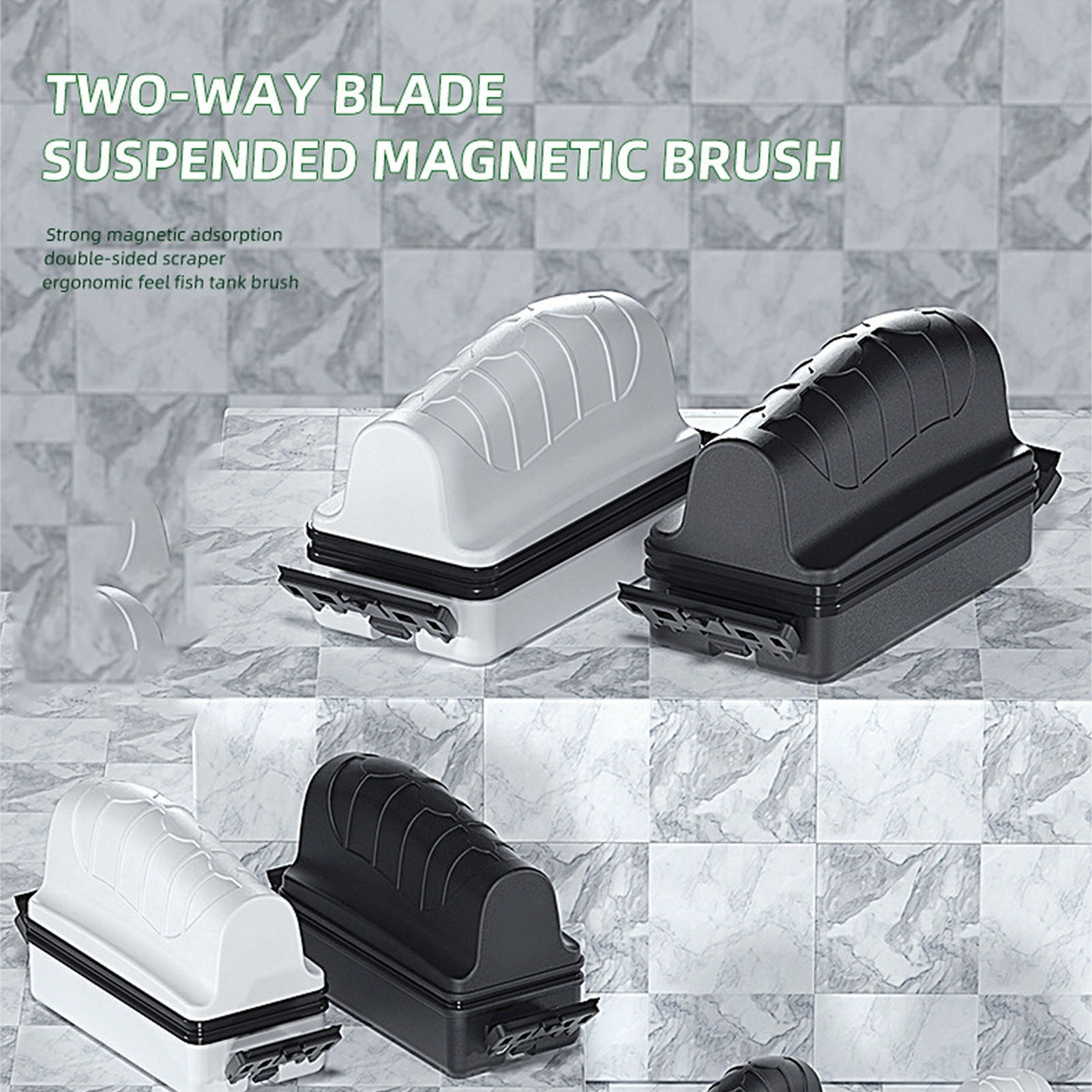1. Подвійне лезо: магнітна щітка для акваріума використовує подвійний скребок для оптимізації ефекту скребка, комплексного очищення та 4-кратного потужного магнітного всмоктування.