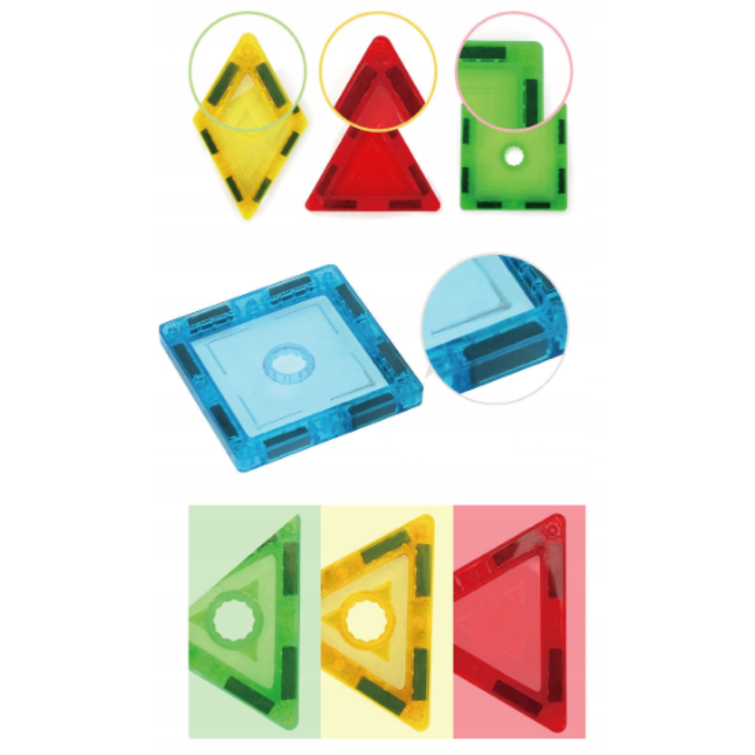 Блоки мають вбудовані магніти з кожного боку, що дозволяє легко з’єднувати елементи та створювати незліченну кількість структур.