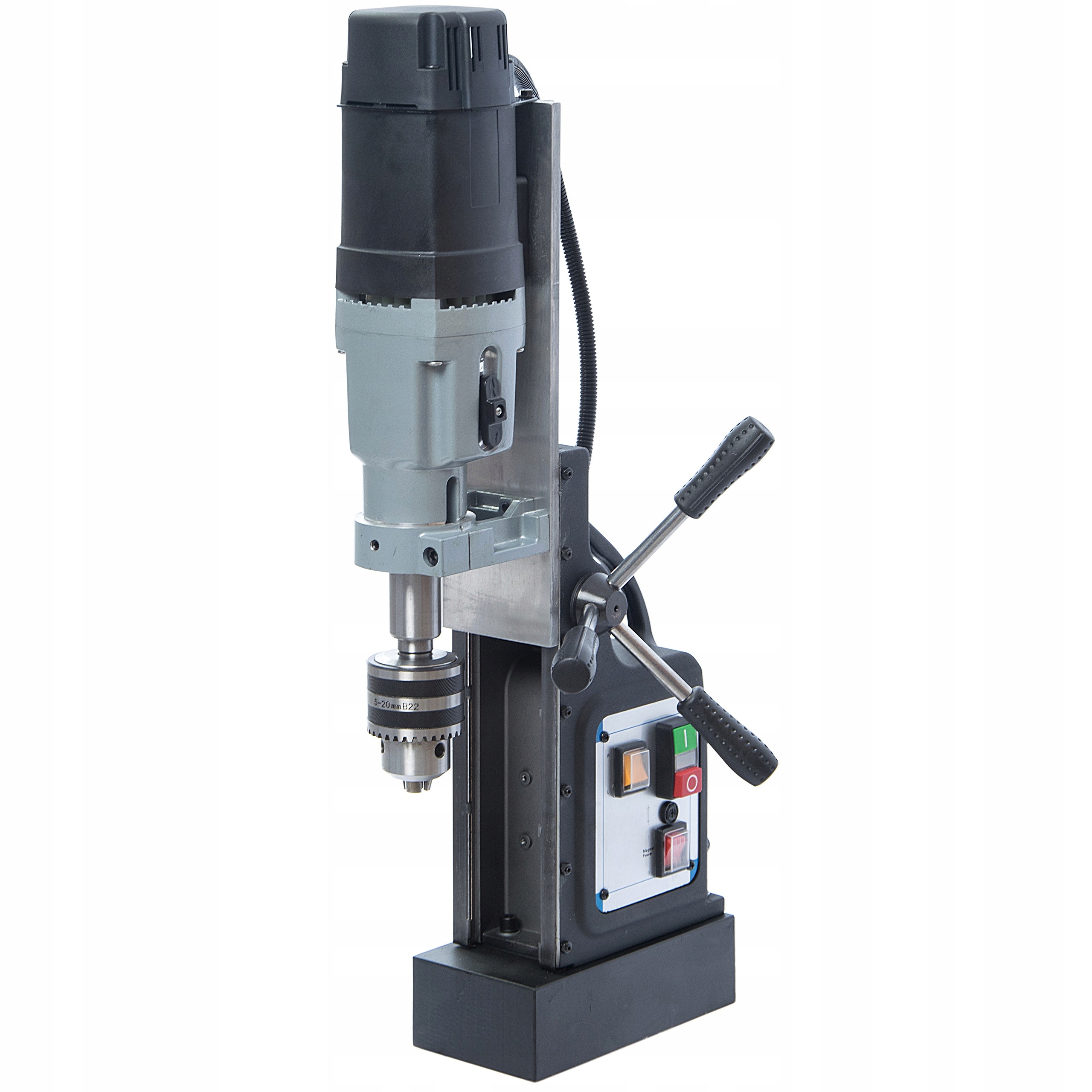 Свердлильно-різьбовий верстат з магнітною лапкою торгової марки MAGNUM - професійний пристрій, призначений для промислового використання. Ця модель оснащена стандартним конусним тримачем Морзе MT3, призначеним для точного нарізання різьби, свердління корончатими фрезами та спіральними свердлами з використанням відповідних тримачів. Невелика вага, великий робочий хід і дуже сильний магніт - це особливості, які відрізняють дриль MAGNUM від аналогічних пристроїв. Дриль упаковано у валізу для зручного транспортування та зберігання.
